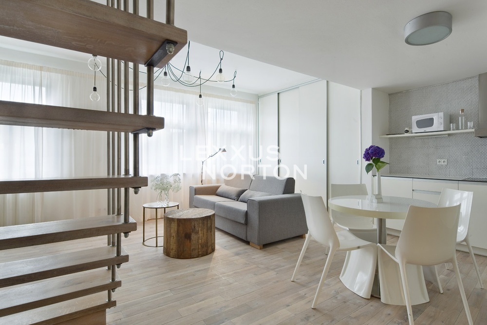 This duplex apartment on the 5th floor of a building in the attractive Smichov district of Prague offers exclusive living close to several parks and with excellent transport links.The interior consists of an entrance hall, living room with kitchenette and dining area, bedroom upstairs with access to the terrace, and bathroom (shower and separate toilet). This exclusive location offers a homely and safe environment throughout the residence, reception services from 9:00 a.m. to 4:00 p.m., weekly cleaning of apartments with a change of bed linen and towels, 24/7 emergency service, use of the renovated lobby, which provides a pleasant seating area, and of course high-speed internet, which allows you to work from home.The apartment is offered furnished and equipped with kitchen appliances, Wi-Fi, air conditioning, a dining set, a bed, a sofa set, and a wardrobe.Spacious living in a unique location Holeckova Street, located on the slopes of Strahov, is one of the most sought-after residential areas. It consists mainly of villas surrounded by greenery. It has excellent transport links by public transport buses or trams. The nearest metro station, Andel, can be reached in an average of 11 minutes. The area also has good road connections. The motorway ring road can be reached by car in 13 minutes and Vaclav Havel Airport in 18 minutes. Families with children will certainly appreciate the number of kindergartens, elementary and secondary schools, and prestigious international schools in the area, such as Lycée Francais de Prague, Deutsche Schule Prag, and solid civic amenities such as hospitals. There is a wide range of leisure activities on offer, for example at the nearby Svandovo Theater, OC Novy Smichov, Cinema City Novy Smichov, or CineStar Andel. The apartment is located near Arbesovo Square and 14. rijna Square. You can enjoy romantic walks and pleasant seating in the nearby Dienzenhofer Gardens, Sacré Coeur Park, Petrin Gardens, and Kinsky Gardens.The prospective client agrees to pay a commission of 1 month's rent plus VAT.If you are unable to view the property in person, we also offer a real-time video tour from the comfort of your home via Messenger, WhatsApp, and other communication platforms.