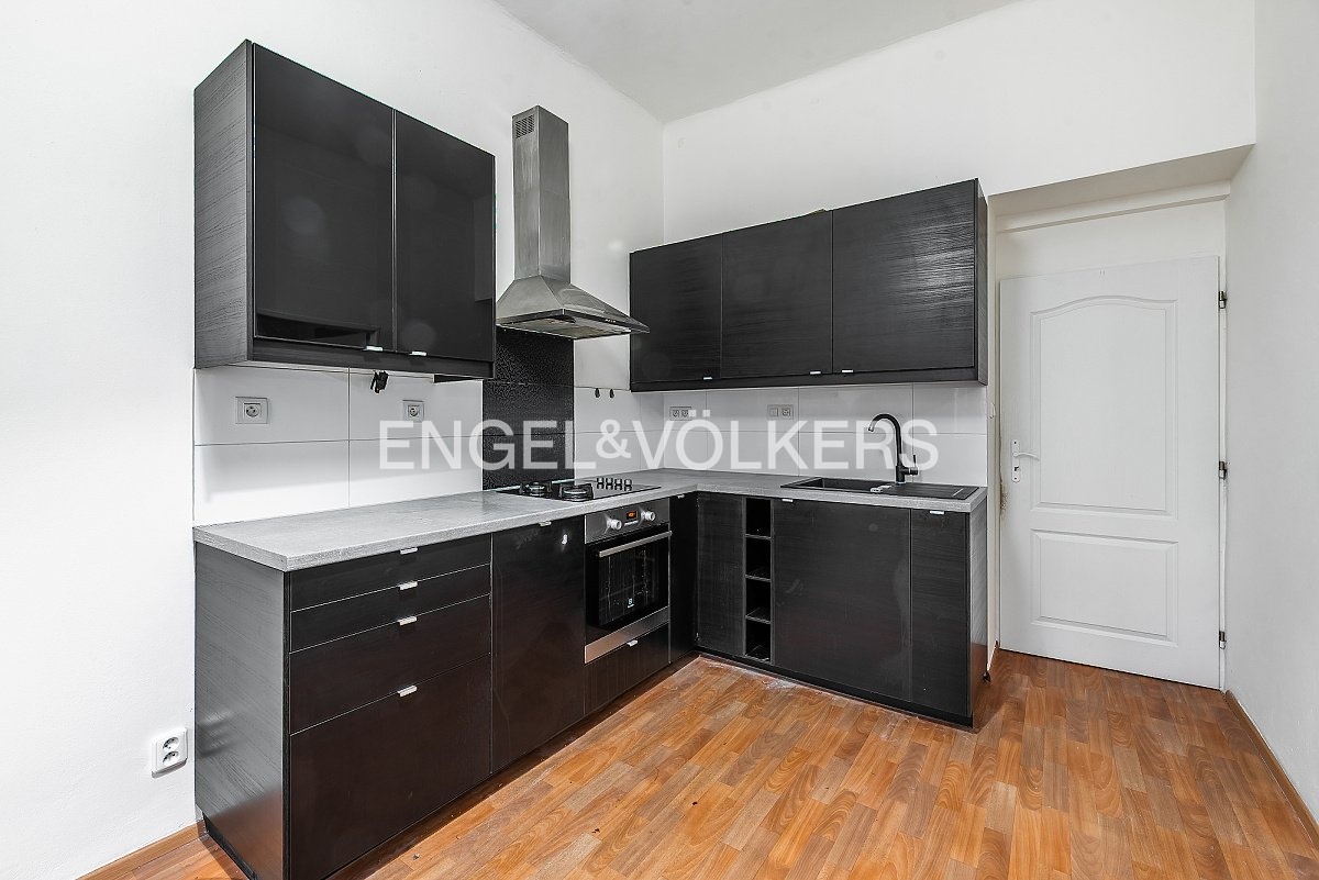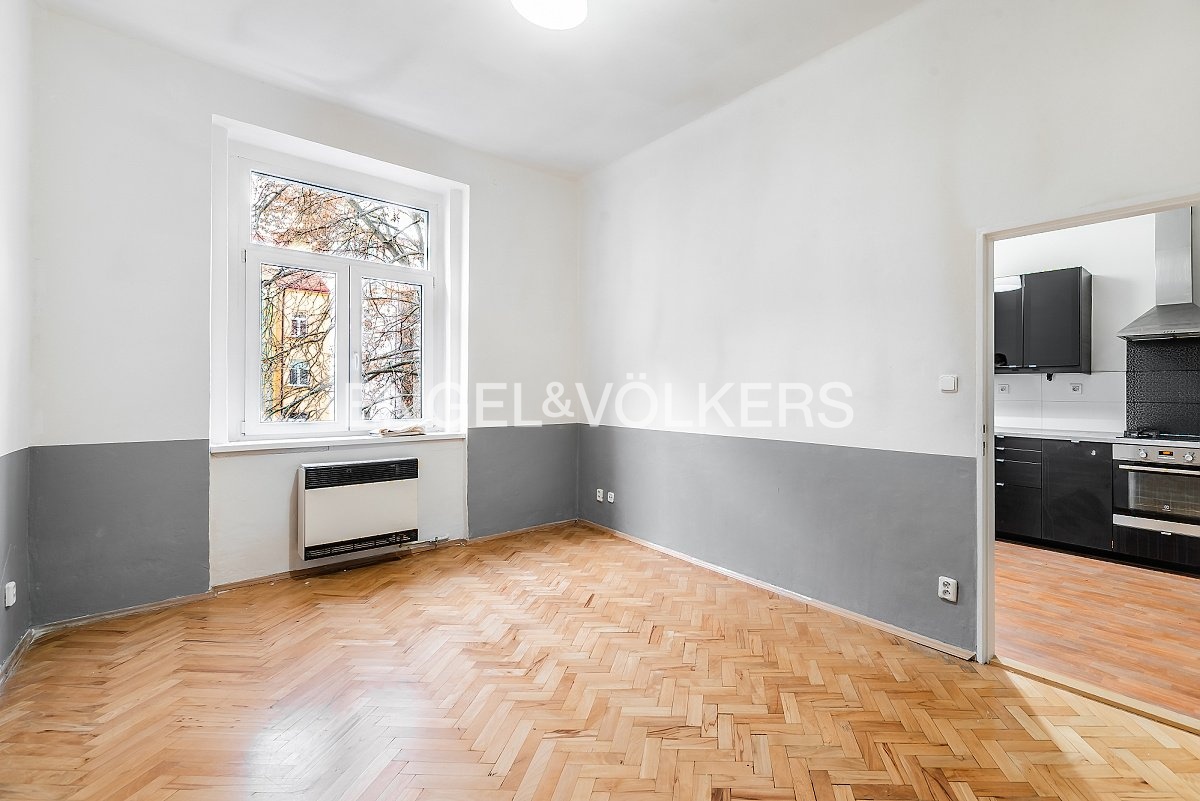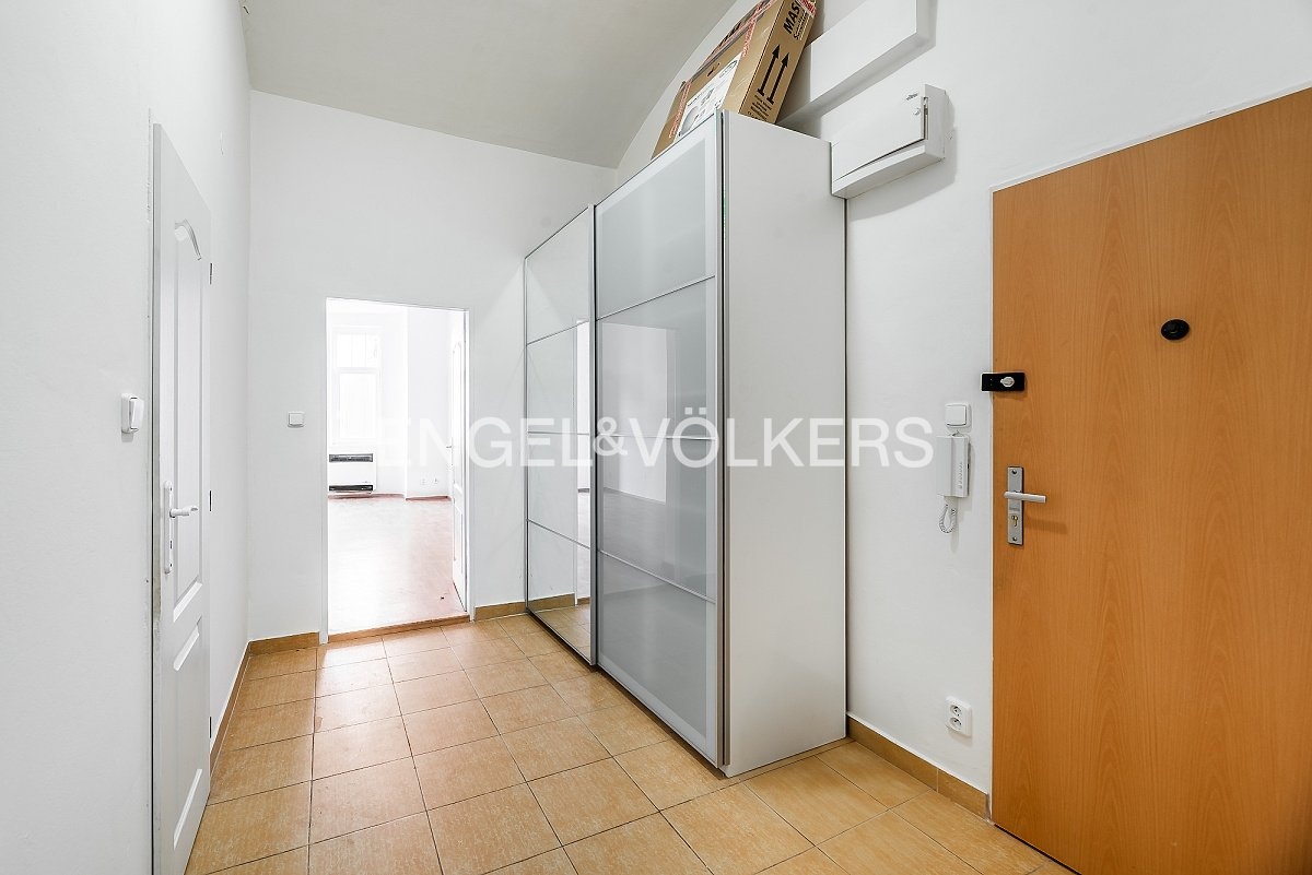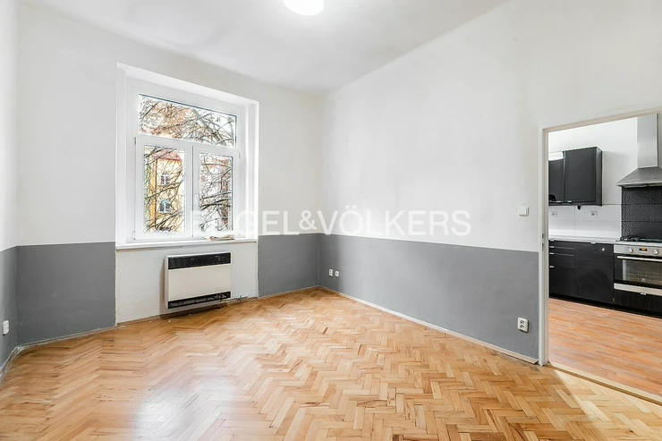 We offer for rent a 2+1 apartment with a size of 70 sqm in the sought-after Prague district of Vršovice, located on the fourth floor of an apartment building. The practical layout offers an entrance hall, a separate toilet, a bathroom with a bathtub, a spacious dining room with a kitchen equipped with all appliances, and two separate bedrooms. One of the bedrooms faces a quiet courtyard and the other faces Na Spojce Street.