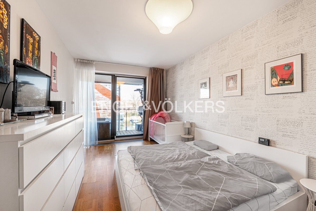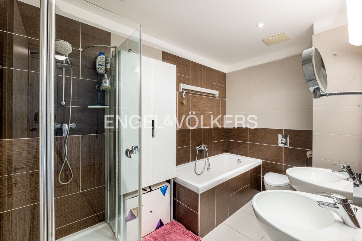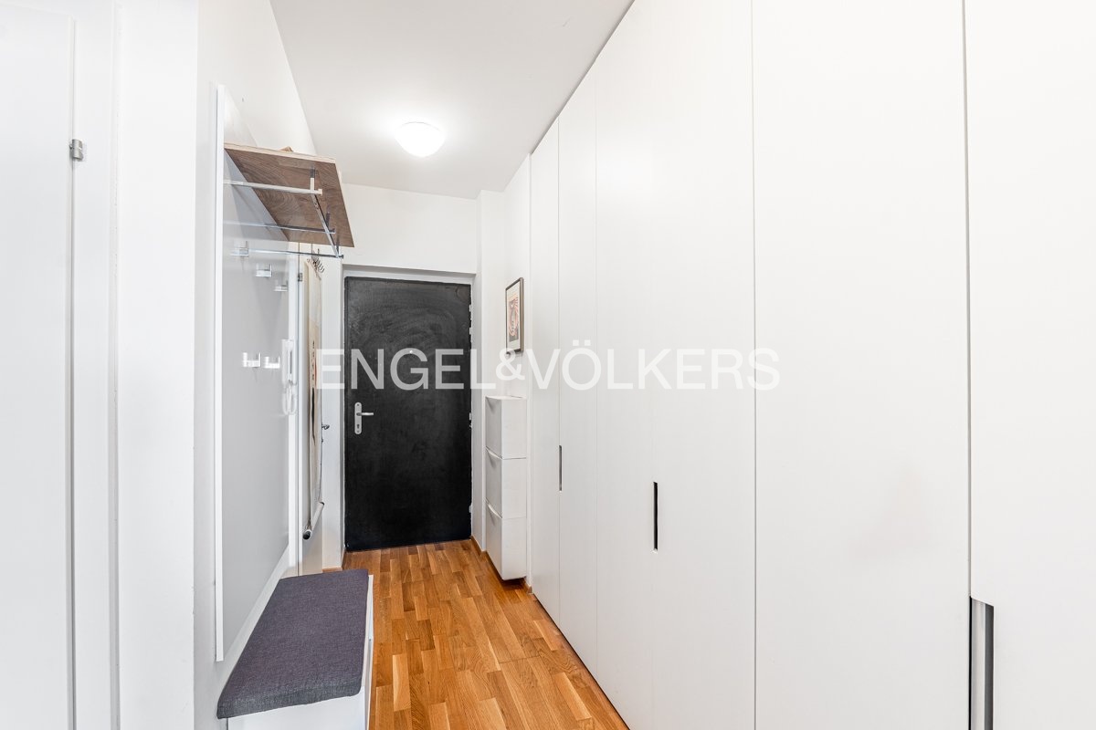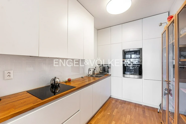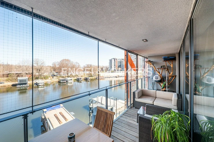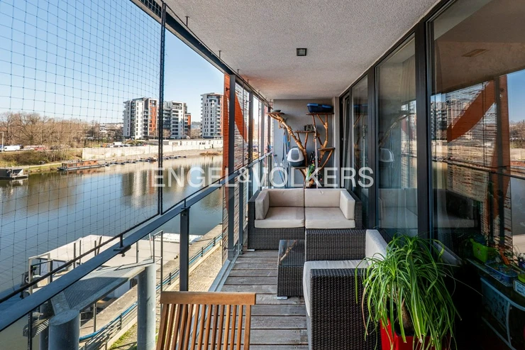 The layout comprises two bright, separate rooms - a living room with a fully equipped kitchen and a separate bedroom. Both rooms have direct access to a spacious east-facing loggia, inviting to a pleasant seating area overlooking the river. The bathroom has a bathtub, a shower, two sinks, a toilet and a heated floor. The apartment also includes a second separate toilet and a utility room. The apartment is offered partially furnished or by agreement. 2x LAN and TV/R sockets in each room.