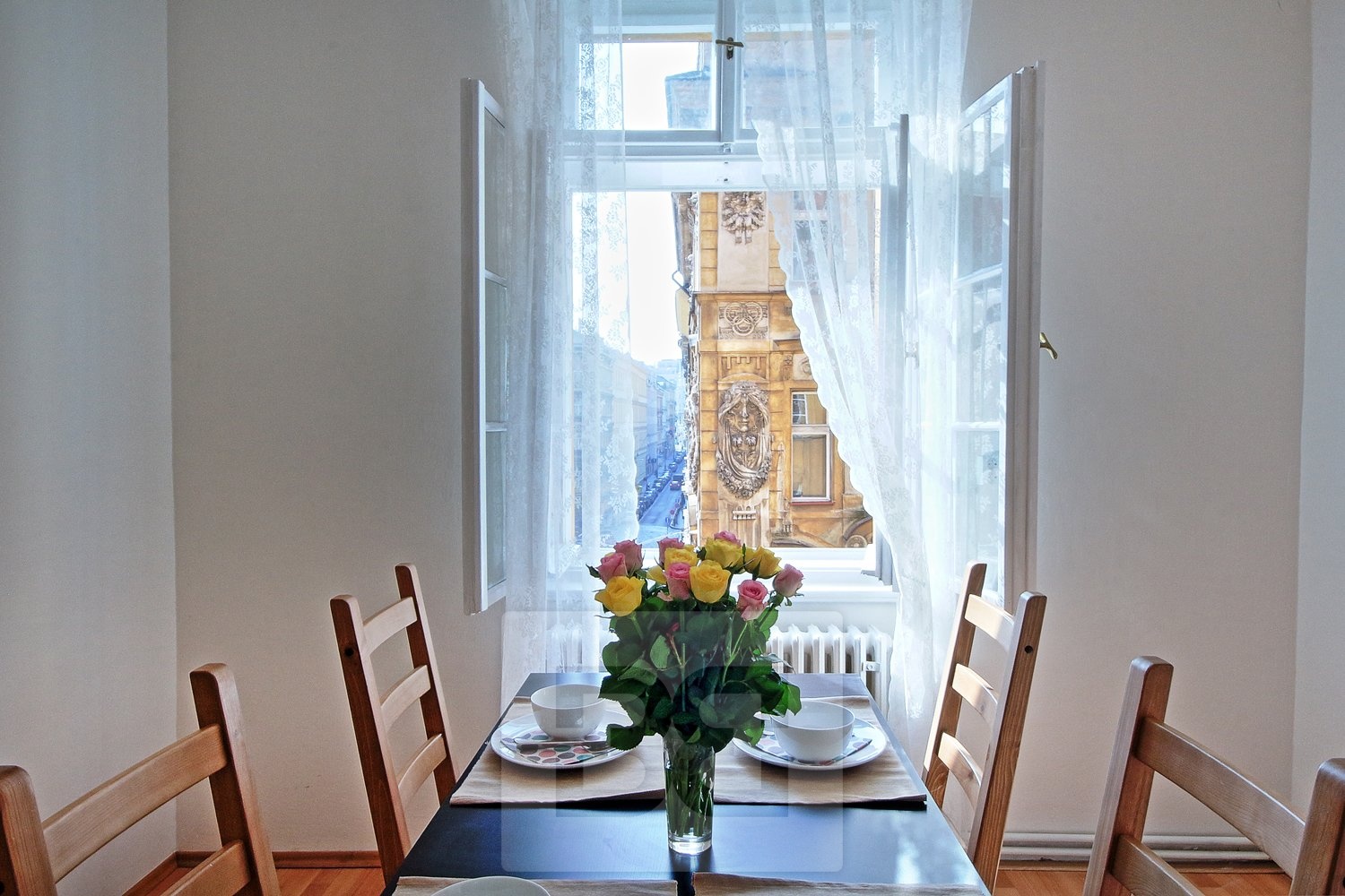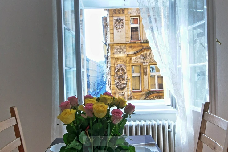 The apartment is located in a beautiful, newly renovated architectural building with an atrium a short walk from the National Theatre and National Avenue. The whole house has been renovated.