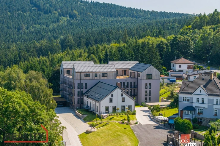Ve výhradním zastoupení nabízíme k pronájmu moderní byt o dispozici 1+kk a podlahové ploše 50 m², který se nachází ve 3. podlaží cihlové novostavby bytového domu Sklárna v klidné části obce Kokonín, spadající pod Jablonec nad Nisou. Dům má celkem 4 podlaží a je situován v samostatném, uzavřeném areálu na okraji lesa v srdci Jizerských hor.