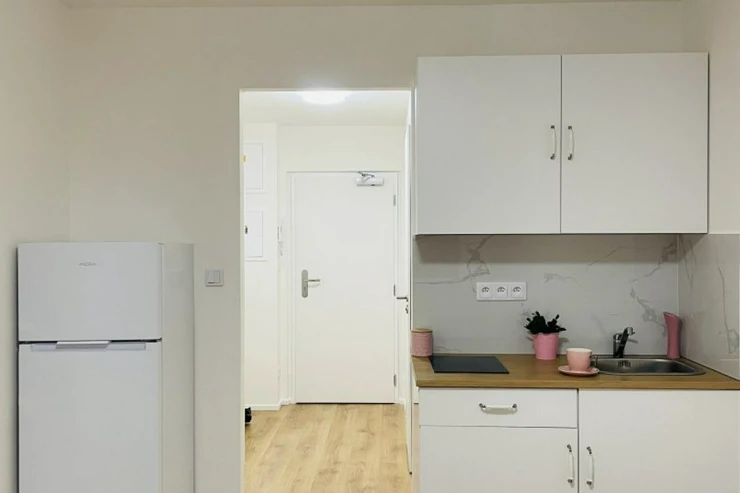 Nabízíme k pronájmu moderní byt 1+kk - novostavba. Je umístěn v klidné části Chodova - nabízí ideální bydlení pro jednotlivce či pár. Byt se nachází ve 4. patře cihlové budovy s výtahem a je částečně vybaven. Celková plocha bytu činí 23 m2.