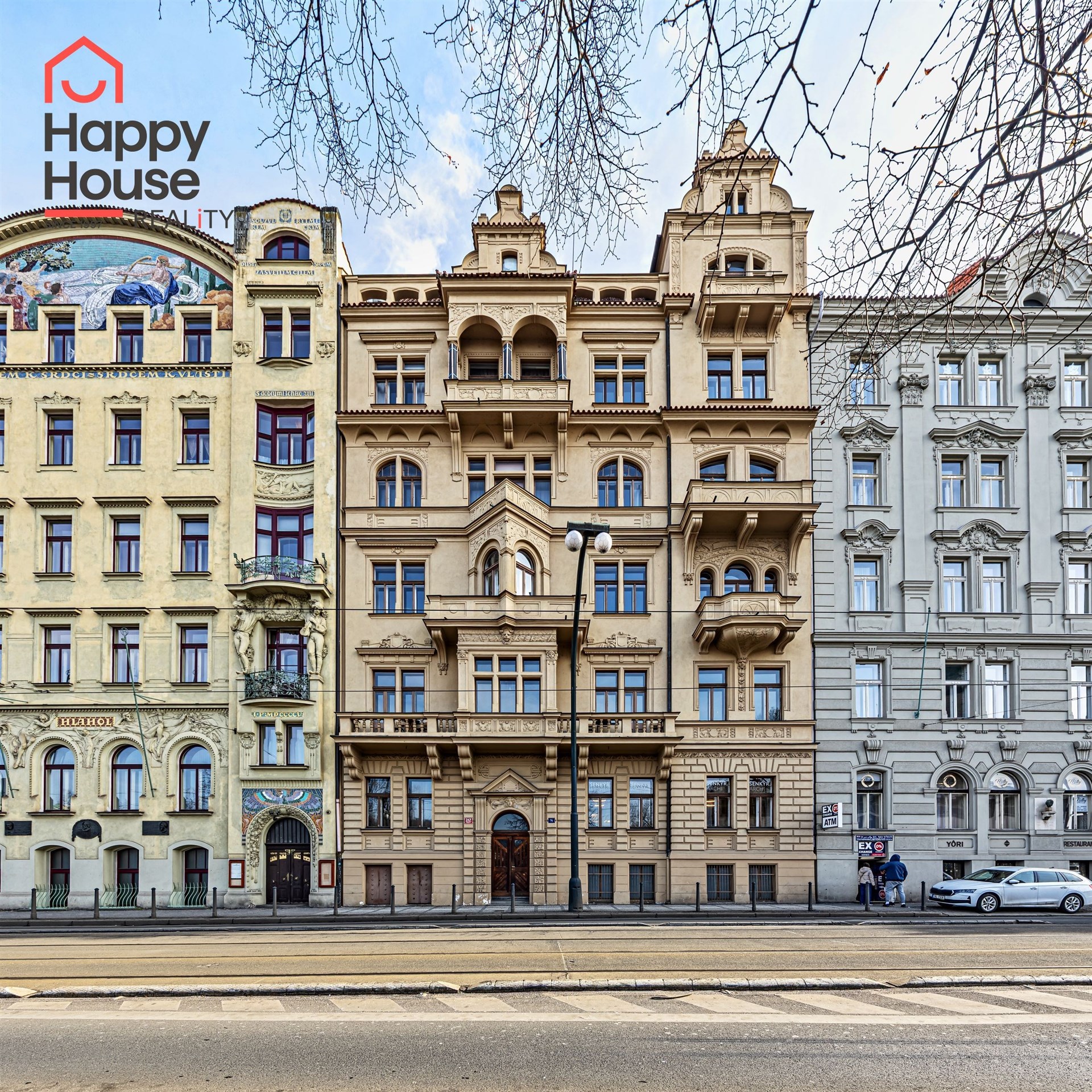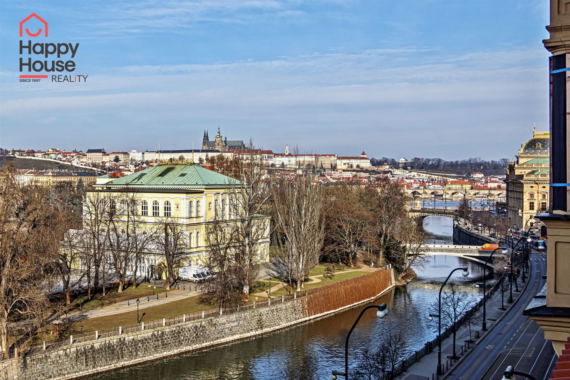 The building is located near Žofín and the National Theatre, within walking distance of the Old Town and Lesser Town, in a location with excellent transport accessibility (trams are nearby, metro a few minutes' walk). Parking in blue zones.