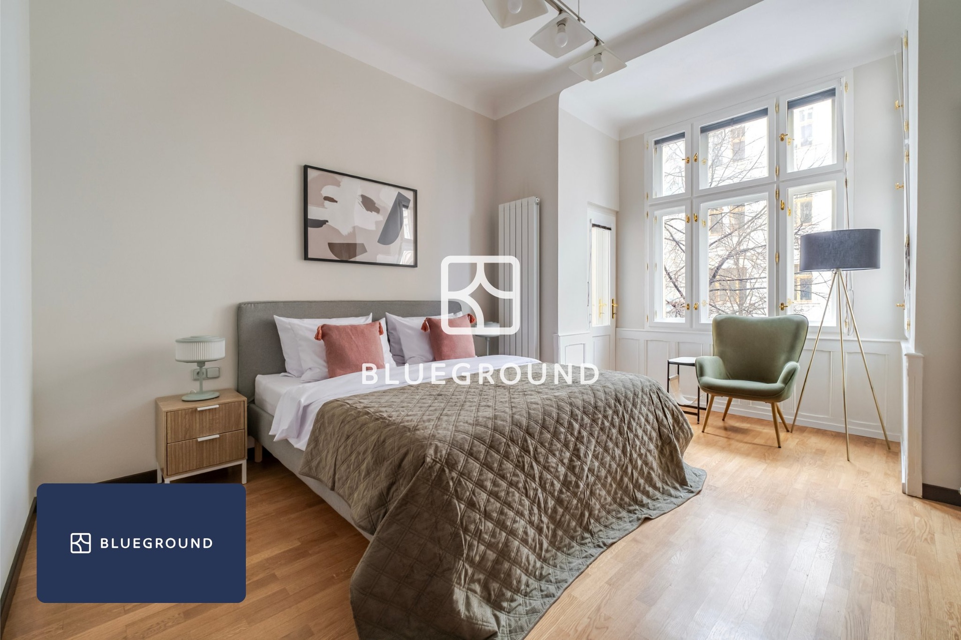 Blueground offers a spacious 84 m² 4+kk apartment in the heart of the Jiřího z Poděbrad area, designed for both productive and comfortable living. Enjoy flexible stays from one month to a year, dedicated workspaces, high-speed Wi-Fi, and an atmosphere that reflects the charm of this historic neighborhood.