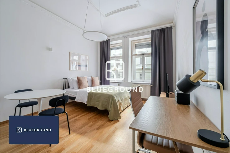 With Blueground, you can move into this fully furnished studio in Prague 3 – Žižkov, located right across from VŠE, starting from just one month. Enjoy flexible mid-term living with no long-term commitments and everything ready from day one.