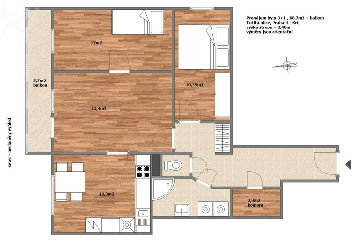 Are you looking for a spacious apartment with excellent transport links and all amenities within walking distance? We are offering a bright 3+1 apartment with a loggia for rent, located on the 7th floor of a well-maintained panel building with two elevators on Točitá Street in Prague 4.