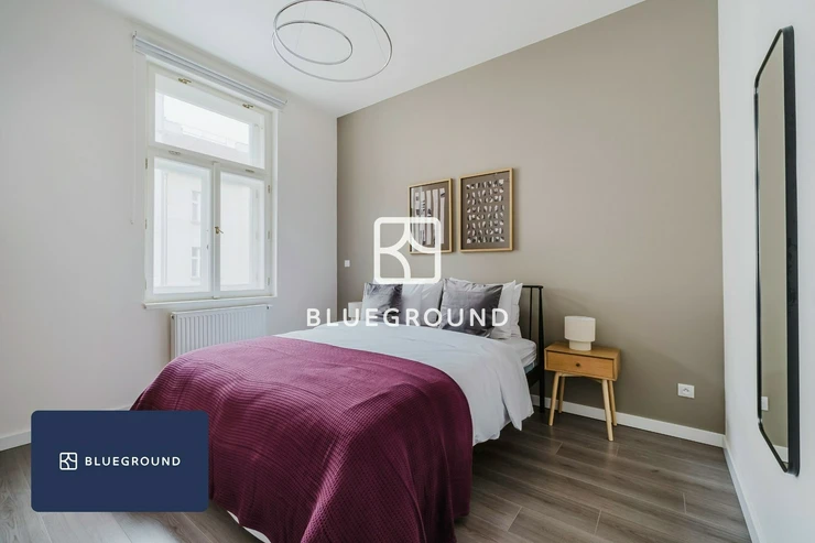 Blueground offers a modern 2+kk apartment (50 m²) in Žižkov, designed for productive and comfortable living. Enjoy flexible stays from one month, a dedicated workspace, and high-speed Wi-Fi included — ideal for focused work and relaxed living.