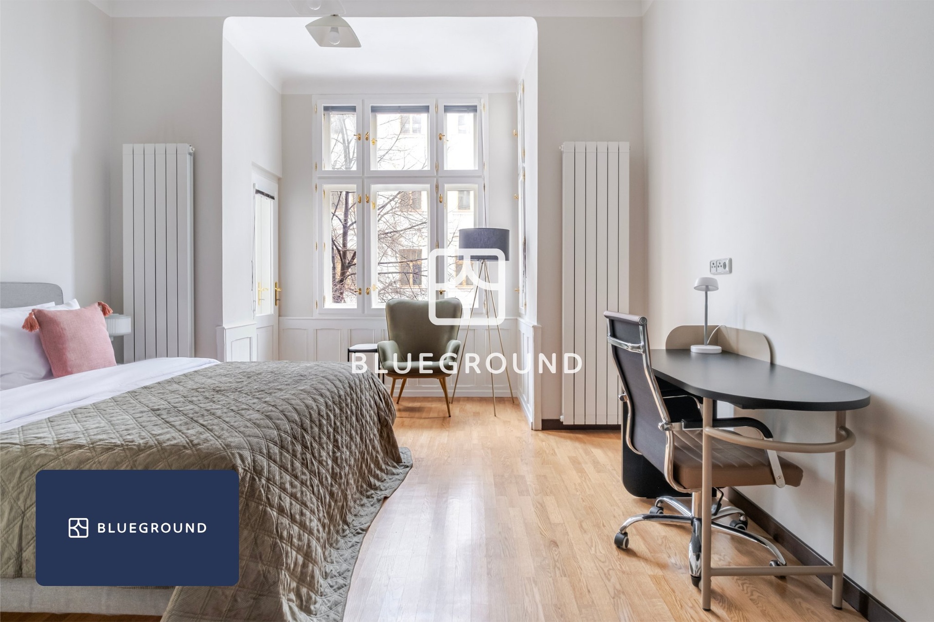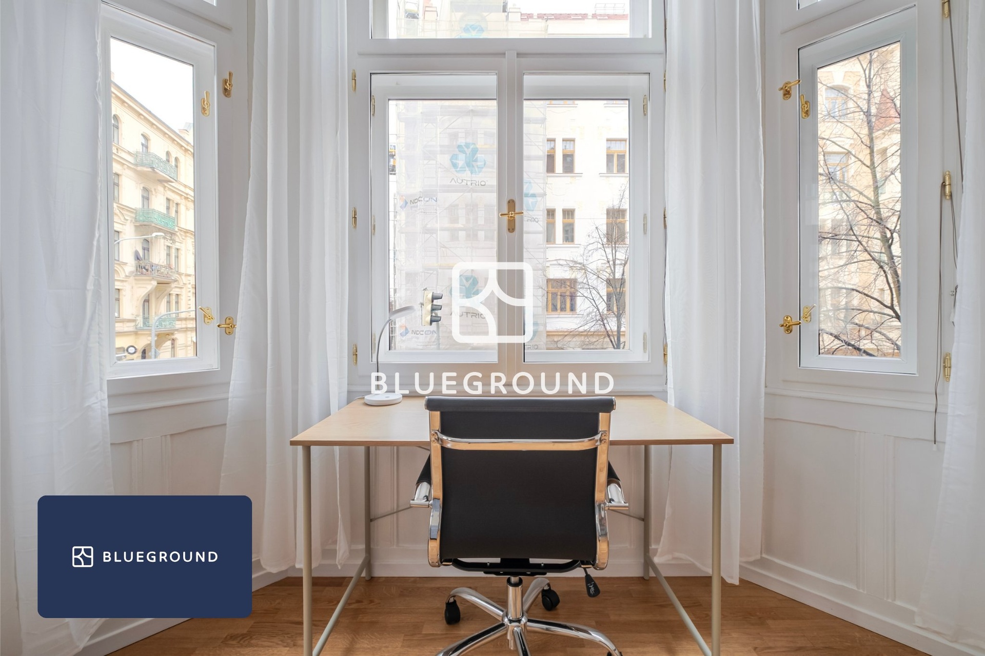 Blueground offers a spacious 84 m² 4+kk apartment in the heart of the Jiřího z Poděbrad area, designed for both productive and comfortable living. Enjoy flexible stays from one month to a year, dedicated workspaces, high-speed Wi-Fi, and an atmosphere that reflects the charm of this historic neighborhood.
