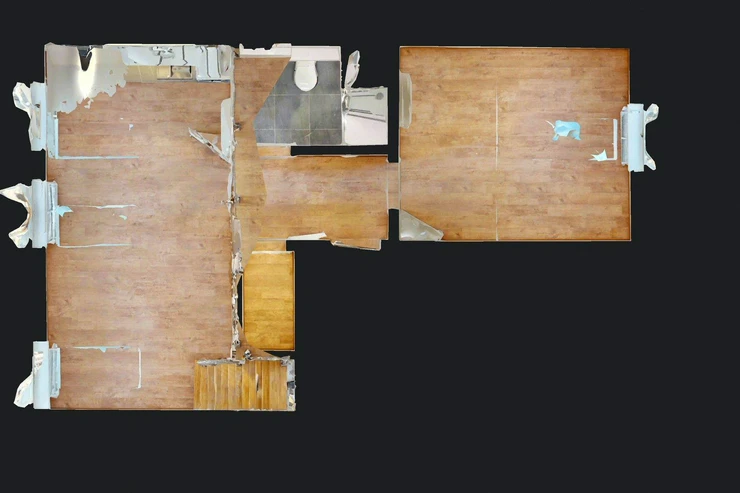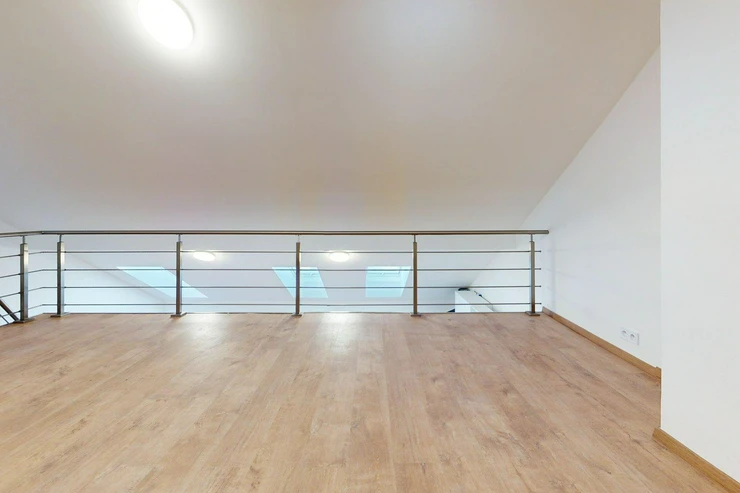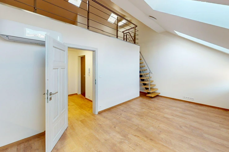 Byt je řešen jako mezonet se dvěma patry, což poskytuje příjemné a praktické rozdělení prostoru. Dispozice zahrnuje obývací pokoj s kuchyňským koutem a další samostatné pokoje, koupelnu s toaletou a vstupní chodbu.