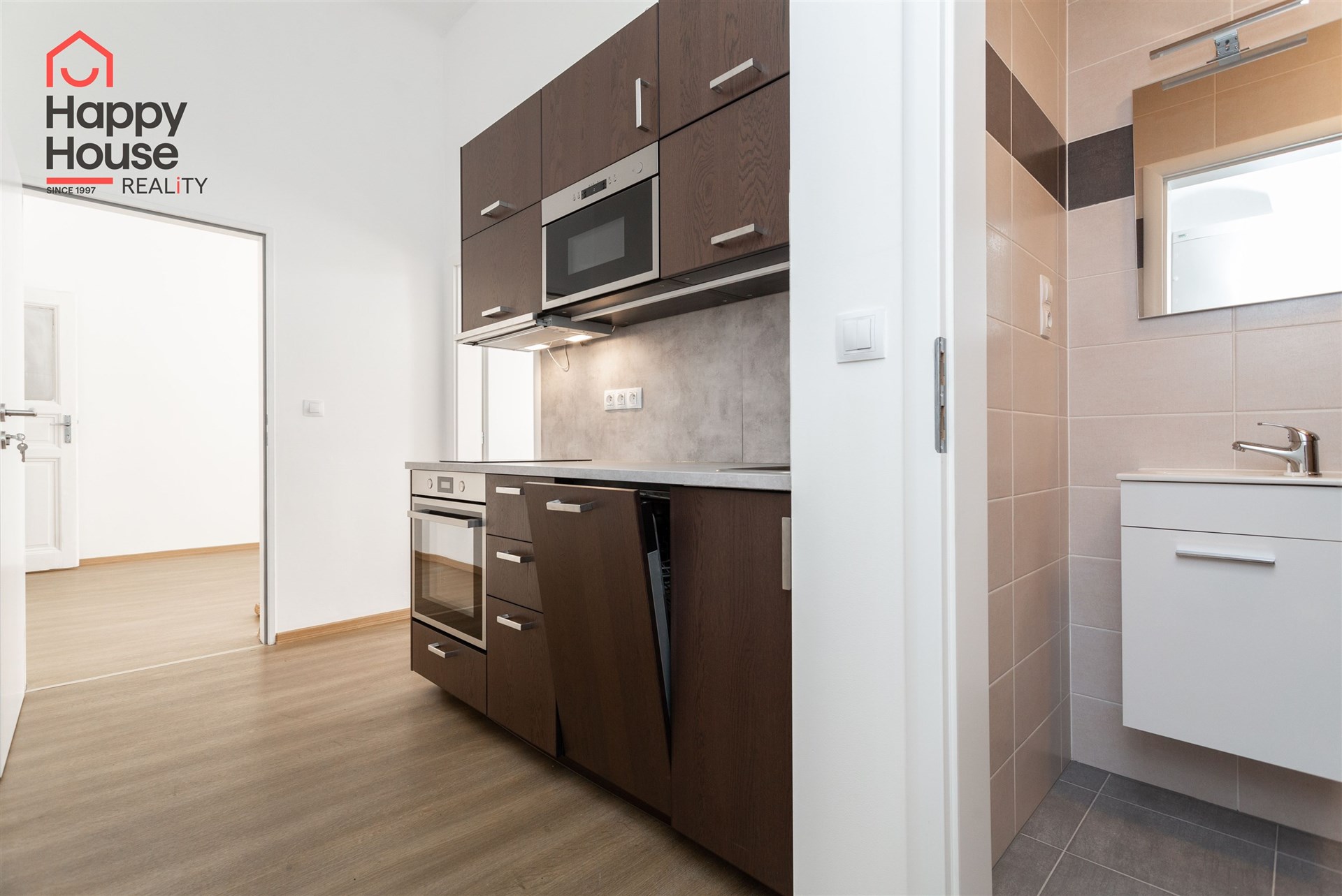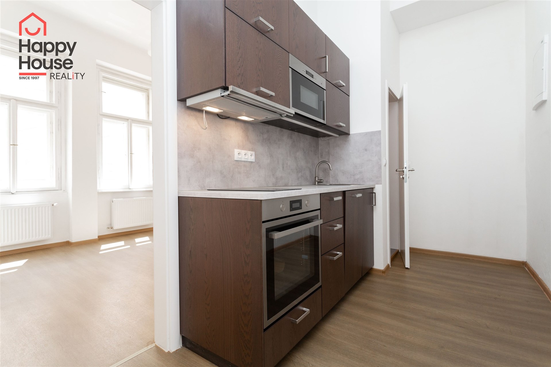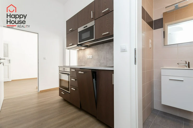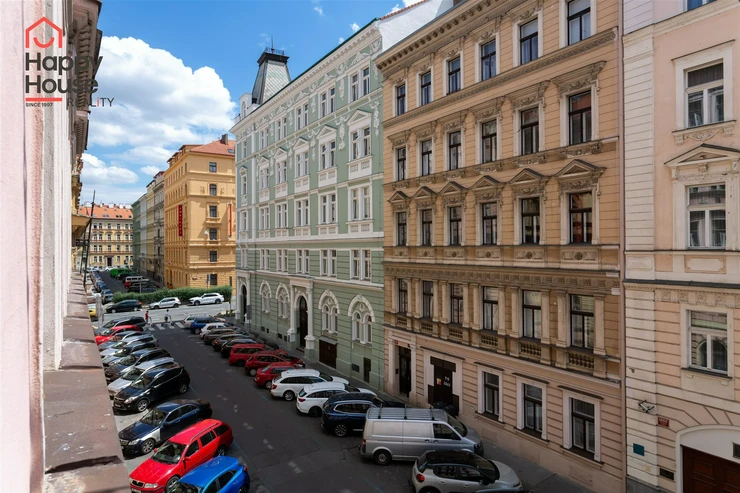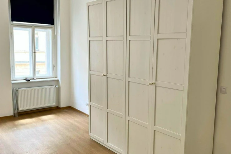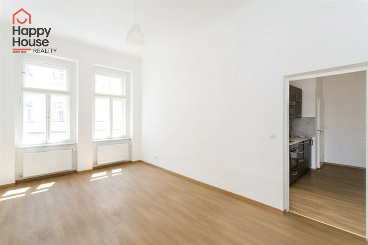 We offer for rent an unfurnished apartment one-bedroom on the 3rd floor of a brick building with an elevator in the popular area of Prague 2 - New Town. The apartment has been renovated. The apartment consists of an entrance hall, one interconnecting and one separate room, bathroom, and a kitchenette located in the corridor connecting the bathroom and both rooms. The kitchenette includes kitchen unit, a ceramic hob, electric and microwave oven, dishwasher, and extractor hood and a freestanding refrigerator. The bathroom has a shower, toilet and washing machine. There is a practical wardrobe in the room. The floors are vinyl and tiles. Heating is provided by central heating. Internet connection available. View from the apartment to the south towards Tyršova Street. Parking possible on the street – zones.