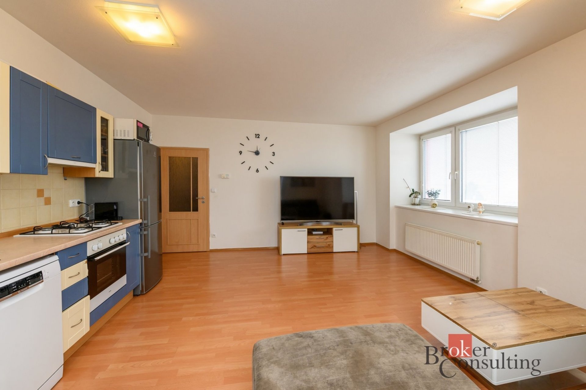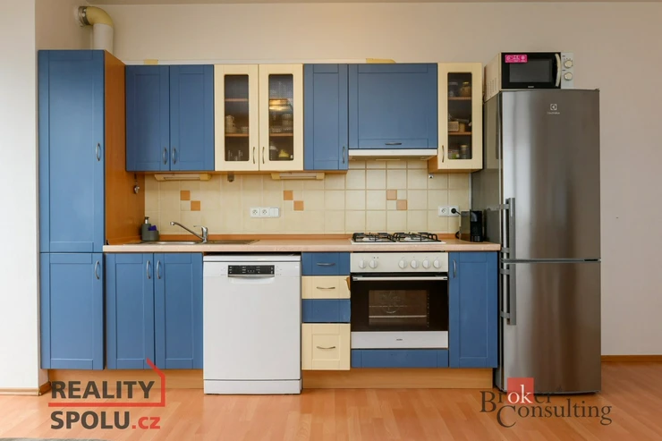 Bytová jednotka o celkové podlahové výměře 78 m2 se nachází ve třetím nadzemním podlaží s výtahem. V bytě je prostorný obývací pokoj propojený s plně vybaveným kuchyňským koutem a vstupem na balkon. Je zde prostorná koupelna s vanou a samostatné WC. Vytápění a ohřev vody je zajištěn plynovým kotlem, který je umístěn uvnitř bytu.