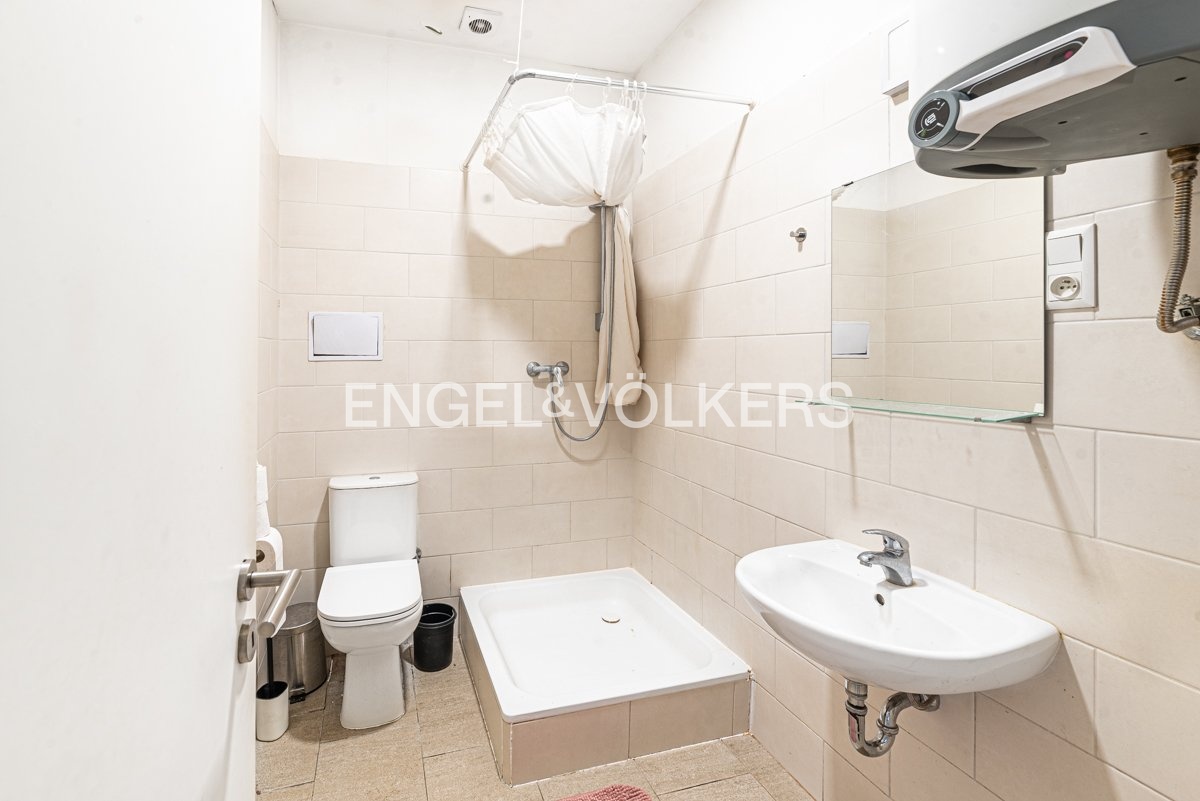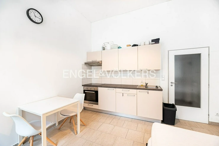 The main room is a spacious room with a partially equipped kitchenette.