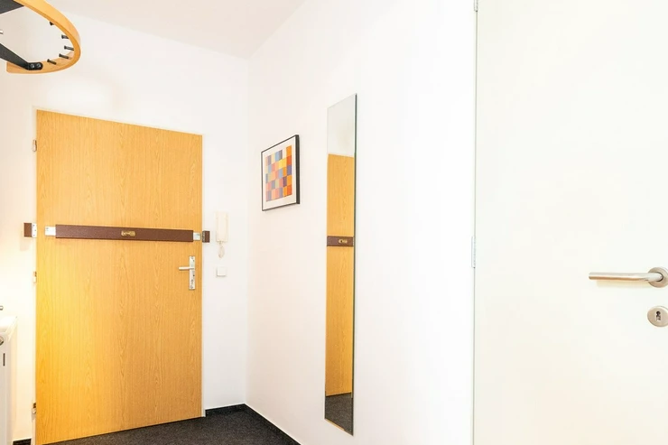 The layout of the apartment is divided into two floors, while the ground floor of the apartment has an entrance hall, a toilet, a storage room, a living room and a kitchen. On the upper floor, there is a bedroom, a bathroom and a spacious dressing room. The apartment is furnished with basic furniture, which can be seen in the photos in the ad. Of course, it is possible to take the furniture out of the apartment by mutual agreement.