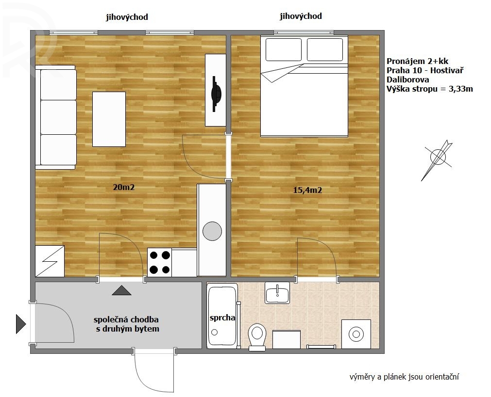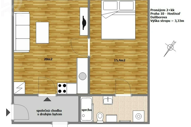 Layout: 2+kk, 44m2