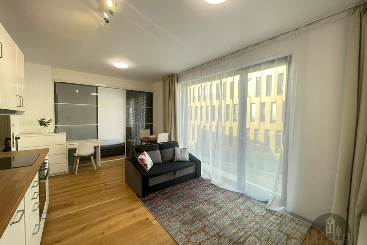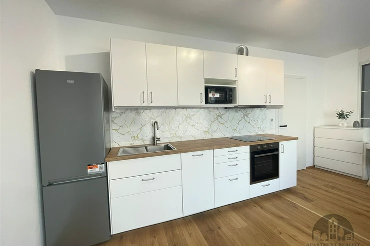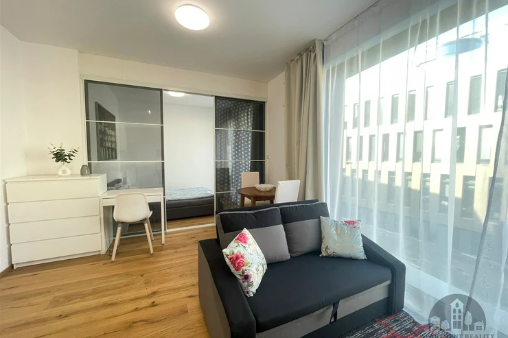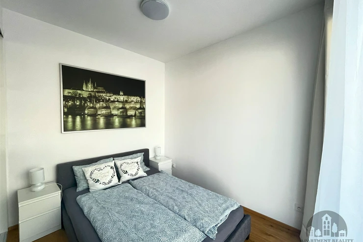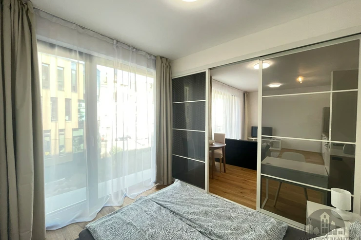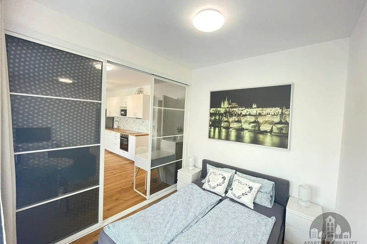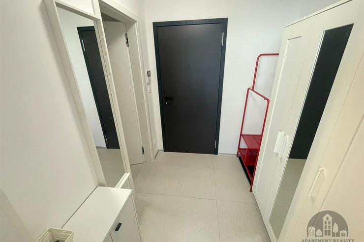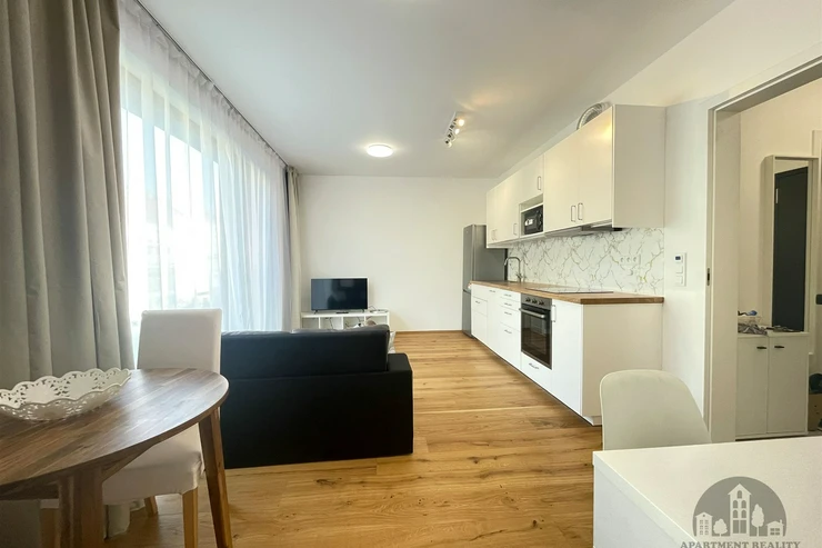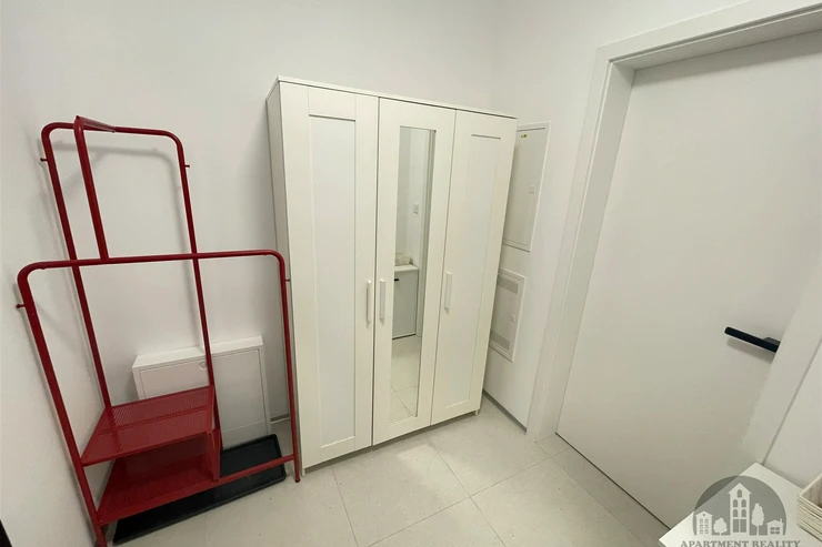 A nice furnished apartment 2+kk with an area of 40m^3 on the 3rd floor with an elevator in a new building. The apartment consists of a living room with a kitchenette, a bedroom, a hallway, and a bathroom. The apartment also includes a cellar, with the possibility to rent a garage space for a fee. The Anděl metro station is just 2 tram stops away. Available immediately.