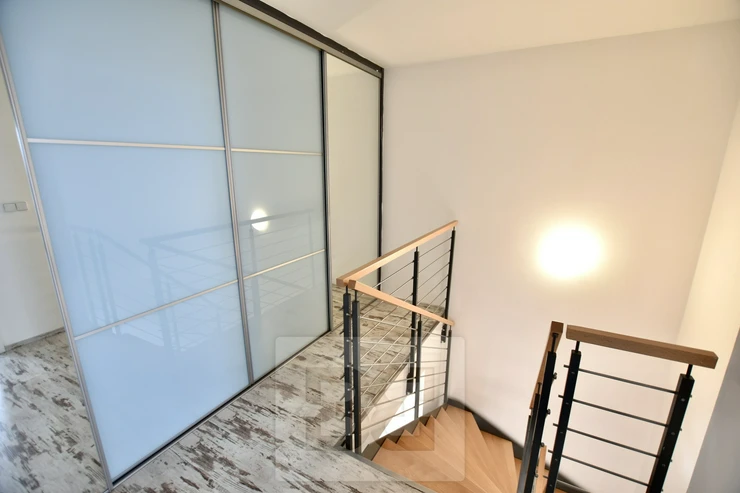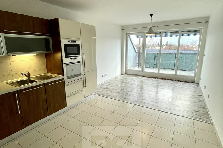 Available from 1/4/2026. Exclusive offer of the spacious 3BED apartment in Prague 9 - Kbely, street Pod Nouzovem. Housing unit with a total area of 101 square meters is situated on the 4th and 5th floor of a new building from 2006 and consists of: 1st floor - a spacious hall with a chamber, where we can find the access to two bedrooms (both have access to a terrace of 7 sqm), bathroom with tub, separate toilet and living room with kitchen brand Hanák with built-in appliances (oven, ceramic hob, dishwasher, microwave, separate refrigerator with freezer), where we can access to the second terrace with an area of 5m2 which can be shaded by an awning. Providing with high-quality staircase we can enter the second floor of the apartment, where there is another bathroom with shower and very spacious bedroom. At the staircase is a practical space with a large built-in closet.