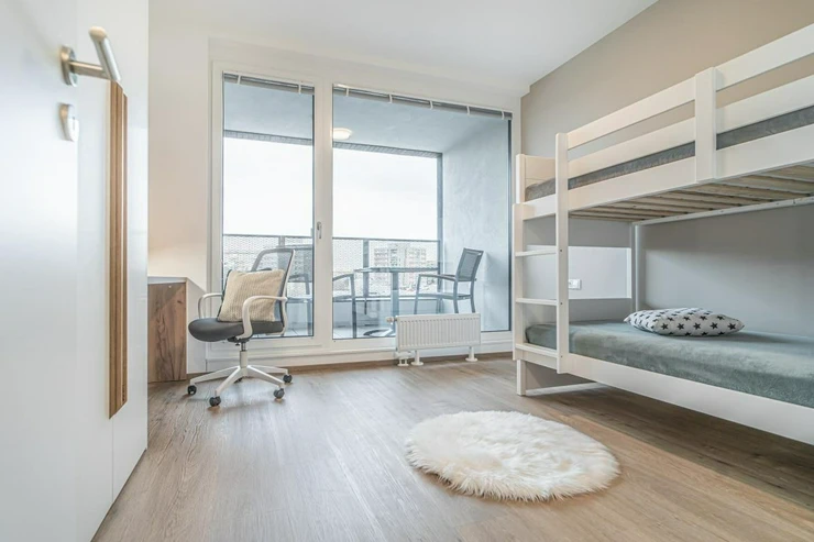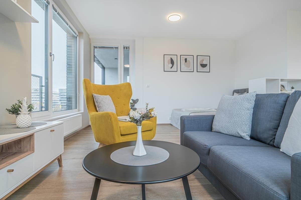 Nabízíme k pronájmu kompletně vybavený byt o dispozici 2+KK s výměrou 64 m2 a lodžií 4,4 m2 ve 4.NP v 11patrovém bytovém domě LOOX přímo u metra Prosek.
