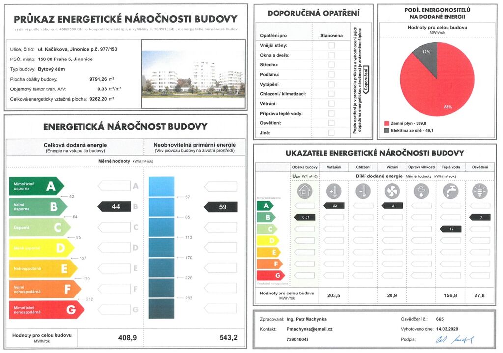 The energy performance level of the building was classified according to Order 78/2013 Coll. as “B”.