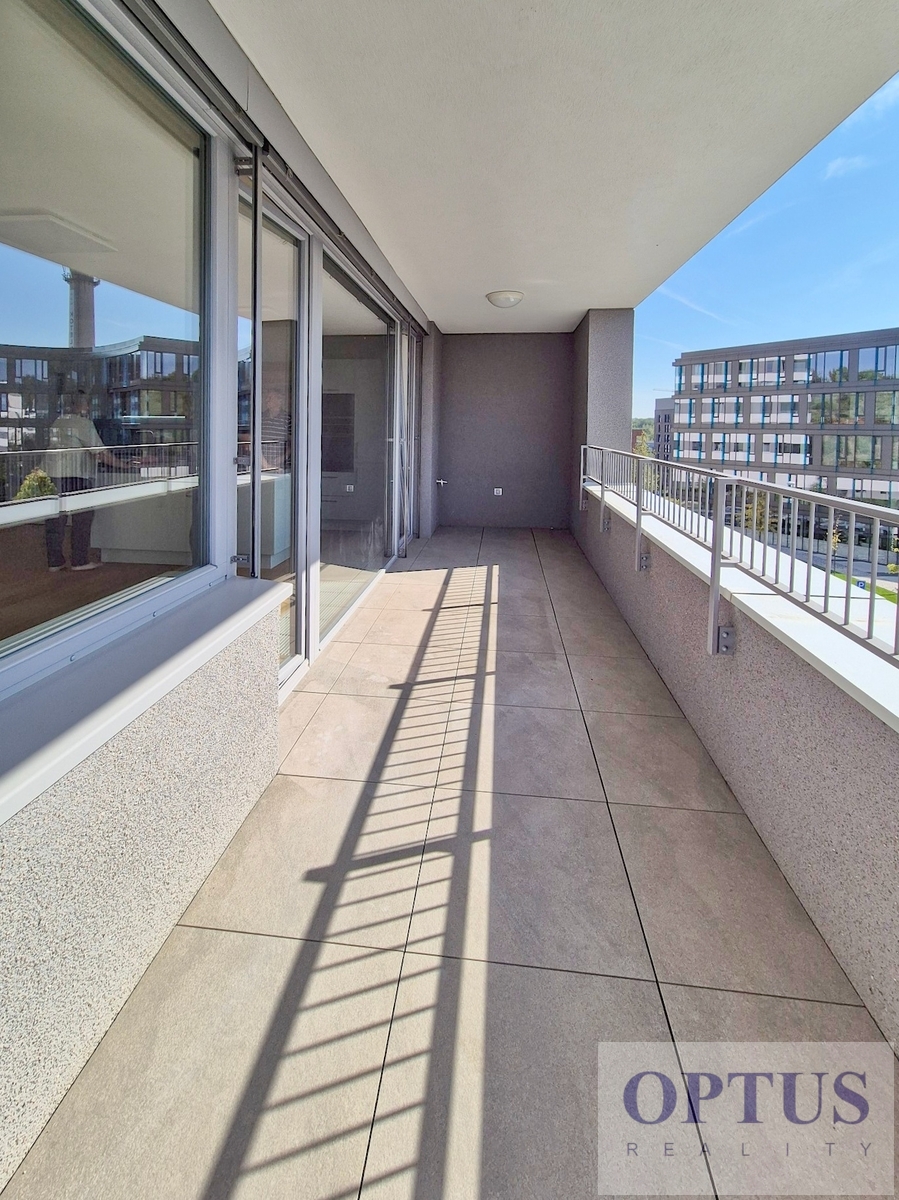 High-level unfurnished apartment 4 + kitchen corner (in area of 117.4 m2) + two terraces of 11.8 m2 and 5.8 m2, situated on the 4th above floor of a brand new residential building with an elevator (built in 2020).