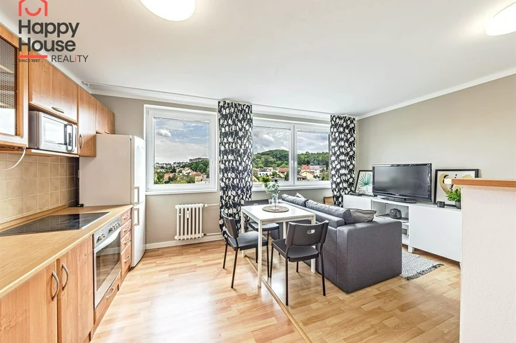 Exklusivně nabízíme k dlouhodobému pronájmu zařízený byt 1+kk o velikosti 29 m2 v 9. patře panelového domu s výtahem v klidné části Prahy 9 Hloubětíně. V kuchyňském koutě se nachází linka, lednice s mrazničkou, sklokeramická deska, elektrická a mikrovlnná trouba, pračka, stůl a 3 židle. V koupelně je sprchový kout a toaleta. Dále postel s novými rošty a matracemi, vestavěná skříň a nové vstupní dveře. Ostatní zařízení na fotkách je pouze ilustarční. Laminátová plovoucí podlaha a dlažba. Centrální vytápění. Internetové připojení k dispozici. Veřejné parkování bez zón. Z bytu je nádherný výhled na starý Hloubětín a lesopark Lehovec
