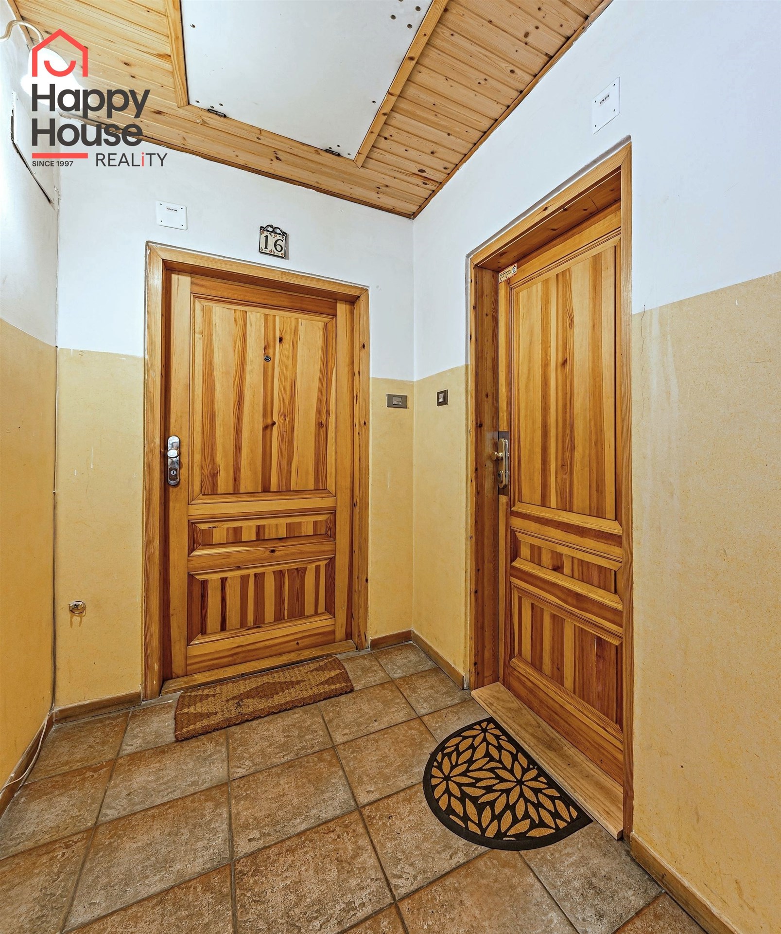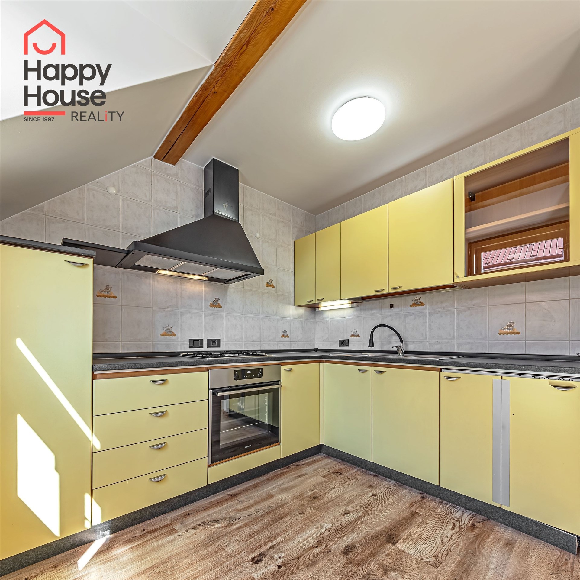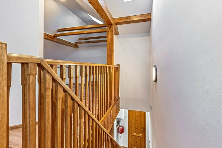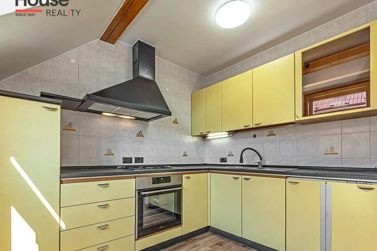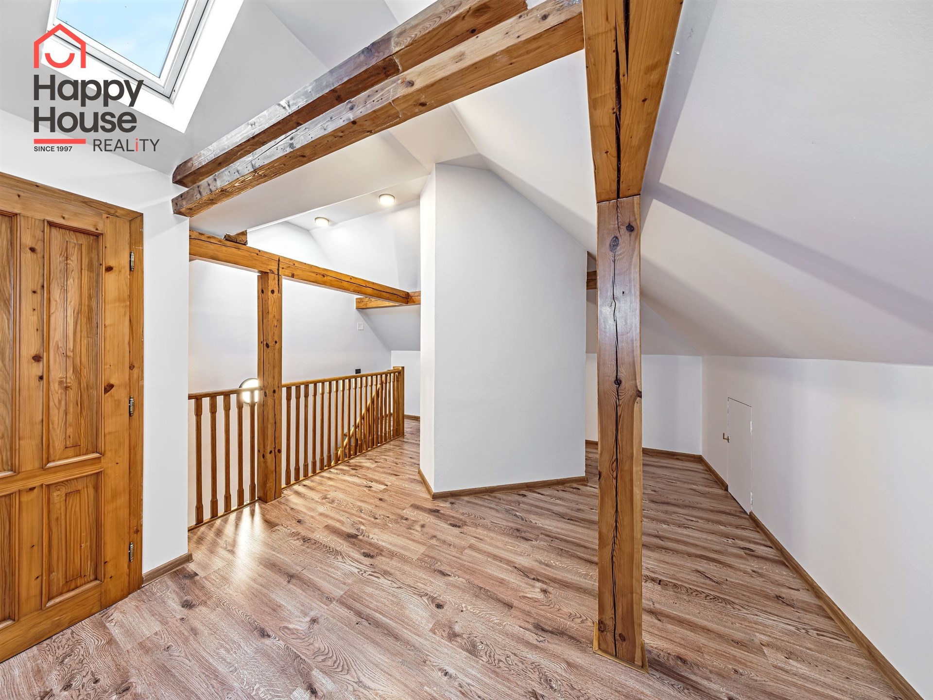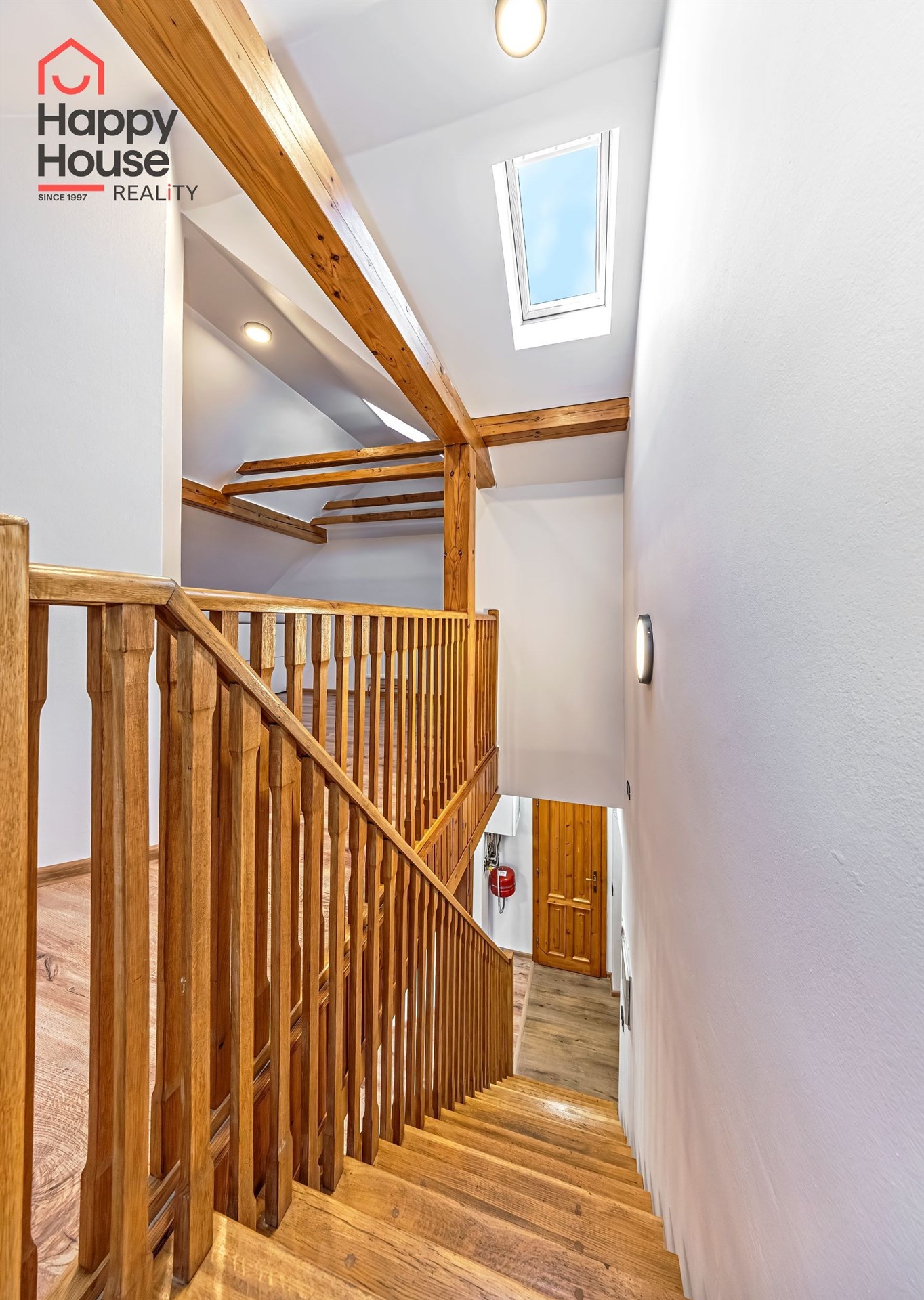 We offer for rent a beautiful, attic, maisonette two-bedroom apartment with an office located on the 5th floor of a brick building with an elevator in a very popular part of Prague 2, Vinohrady. The apartment is unfurnished and offers on the lower floor an entrance hall with staircase, spacious living room with kitchenette, separate bedroom, bathroom (bathtub, bidet, washing machine connection) and separate toilet. Wooden stairs lead to the upper floor, where there is another bedroom in "open space" and a second toilet. The kitchenette has a kitchen unit with built-in appliances - fridge with freezer, ceramic hob, electric oven, and extractor hood. The apartment has a unique atmosphere due to the exposed ceiling and supporting beams. It is also very bright due to the skylights. Telephone connection, internet, and cable TV are available. Laminate floating floors and tiling. Gas boiler in the apartment. Street parking - zones.