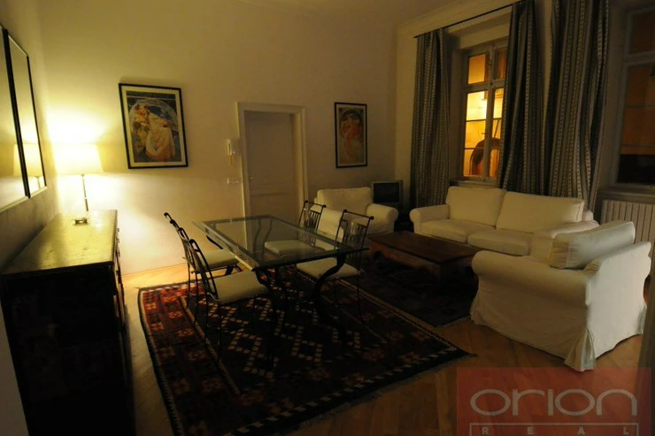 Tastefully furnished one bedroom duplex apartment on the ground floor of a historical building in popular location of Prague 1 - Malá Strana. The apartment has a total area of 73 sqm and offers entry hall, spacious living room with dining area, fully fitted kitchen, one bedroom, one bathroom with tub and shower, toilet, dressing room, storage room. The apartment is situated right in the heart of Mala Strana with lots of local restaurants, pubs, cafés, shops, just a few steps from Malostranske namesti square , where is a tram stop, Charles Bridge, Prague Castle in walking distance. Good access to the French School and Parklane International School.