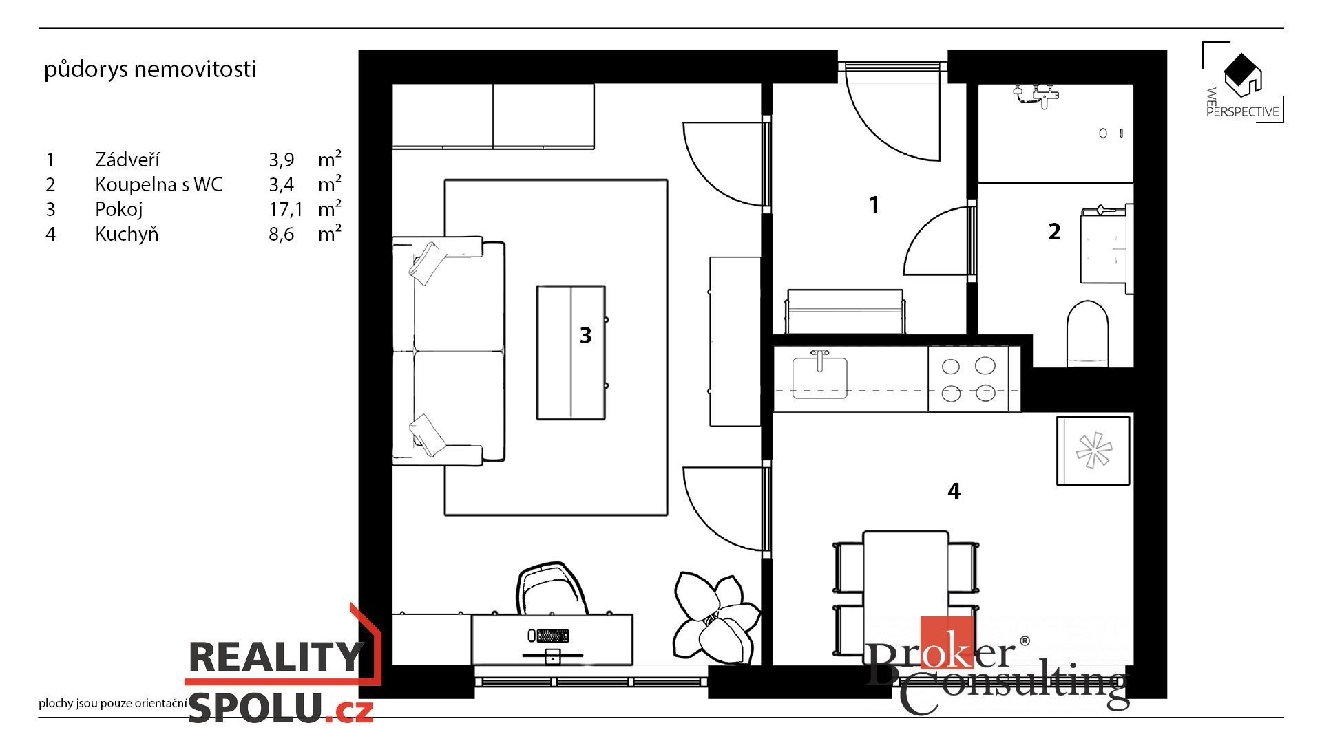 V bytě se nachází prostorný obývací pokoj, koupelna s WC, kuchyně a chodba.