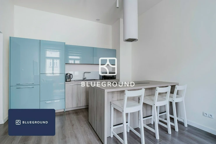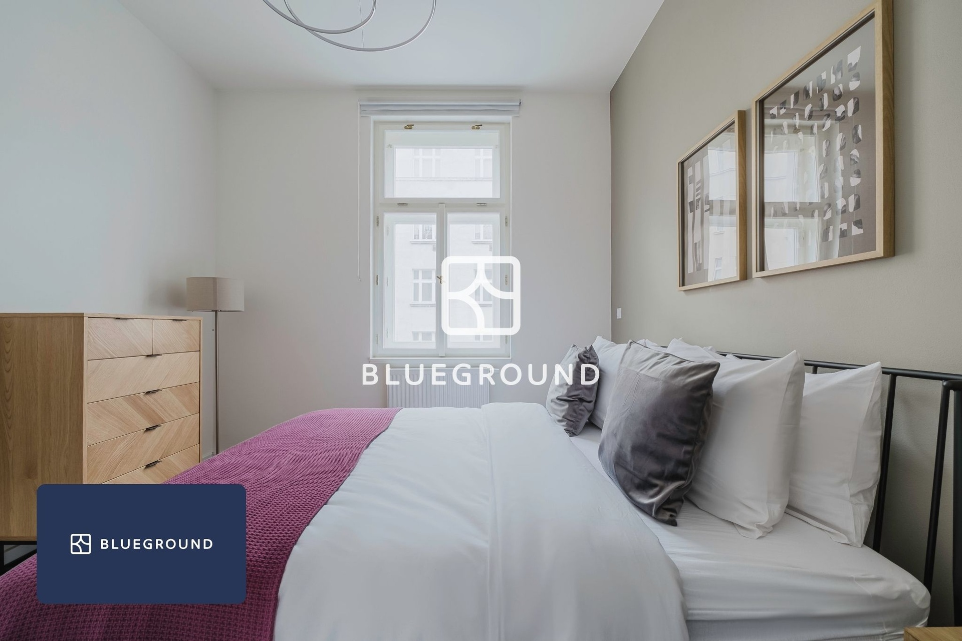 Blueground offers a modern 2+kk apartment (50 m²) in Žižkov, designed for productive and comfortable living. Enjoy flexible stays from one month, a dedicated workspace, and high-speed Wi-Fi included — ideal for focused work and relaxed living.