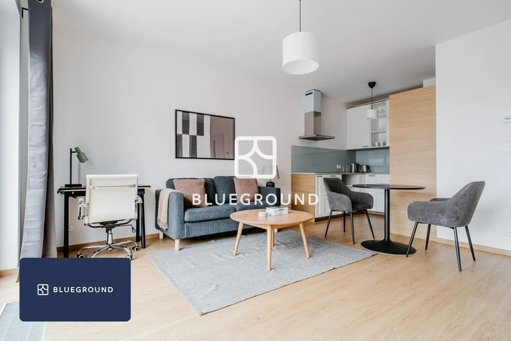 Blueground offers a modern one-bedroom apartment for rent in a newly built complex in Chodov. This apartment features a balcony with a city view, providing a relaxing atmosphere for unwinding. Simply move in and start enjoying life in this airy space, fully furnished with modern furniture. The apartment includes a fully equipped kitchen, a spacious living room, and access to our on-site professional support. With a total area of 44 m², this apartment is ideal for individuals or couples seeking comfortable and modern living. A designated parking space in the underground garage of the building is included for free.