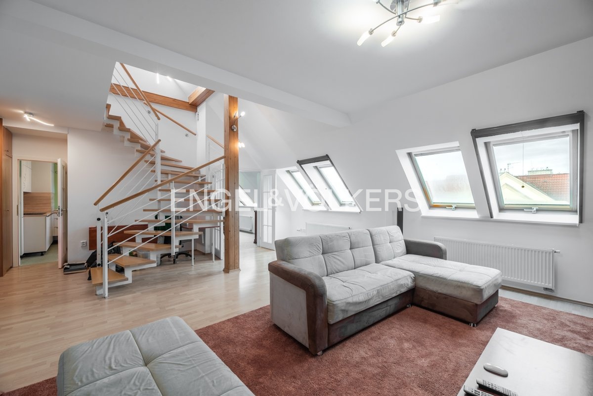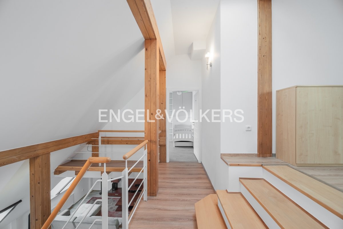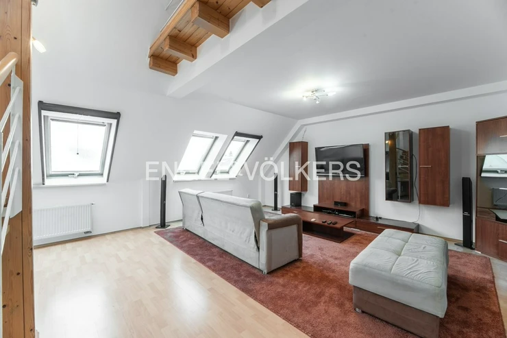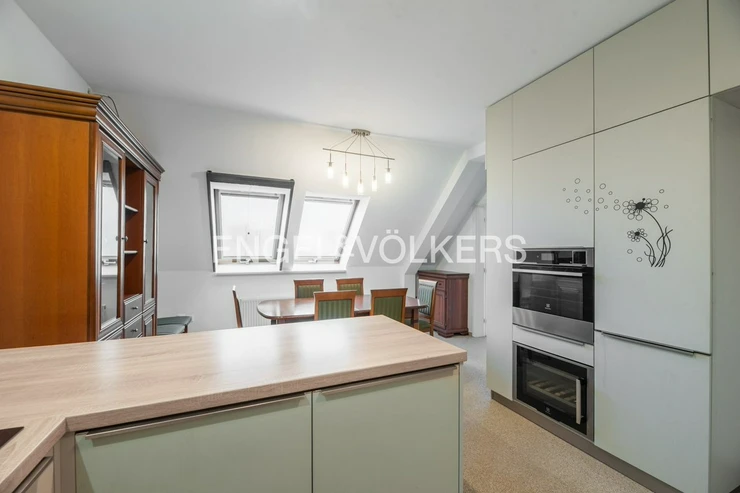 We offer for immediate rent a spacious, fully furnished duplex apartment located on Puškinovo Náměstí in the popular residential area of Prague - Bubeneč. The apartment is located in a renovated apartment building with an elevator directly to the floor.