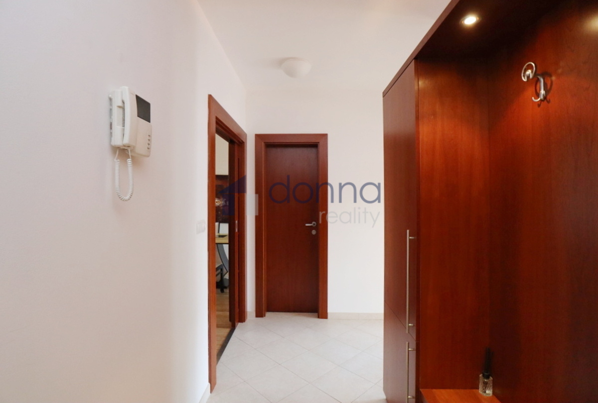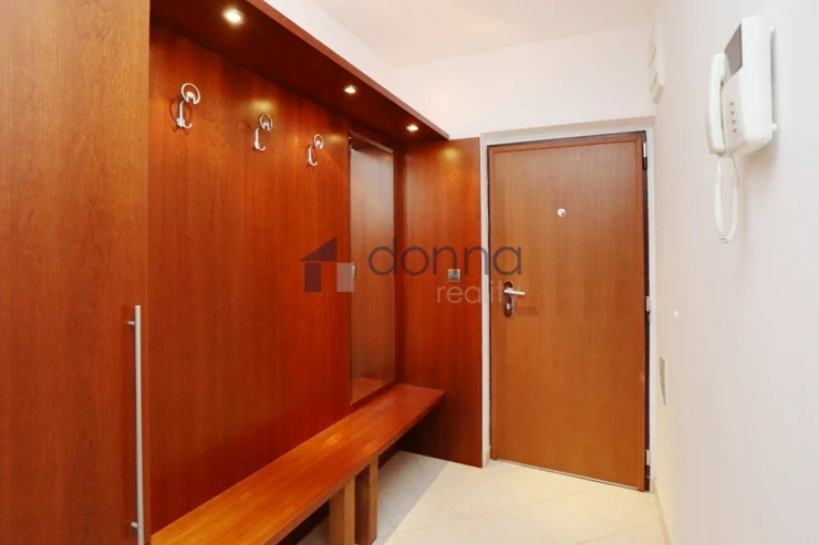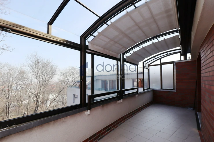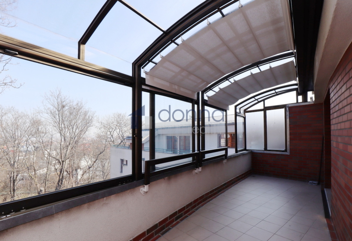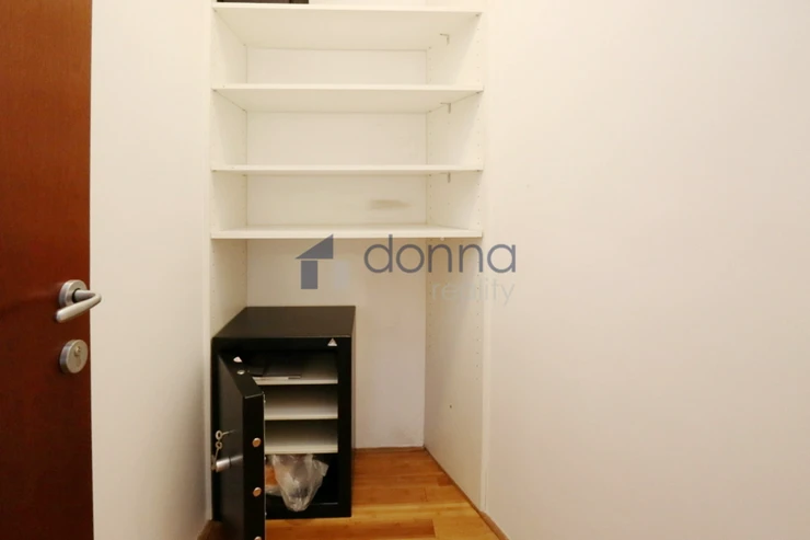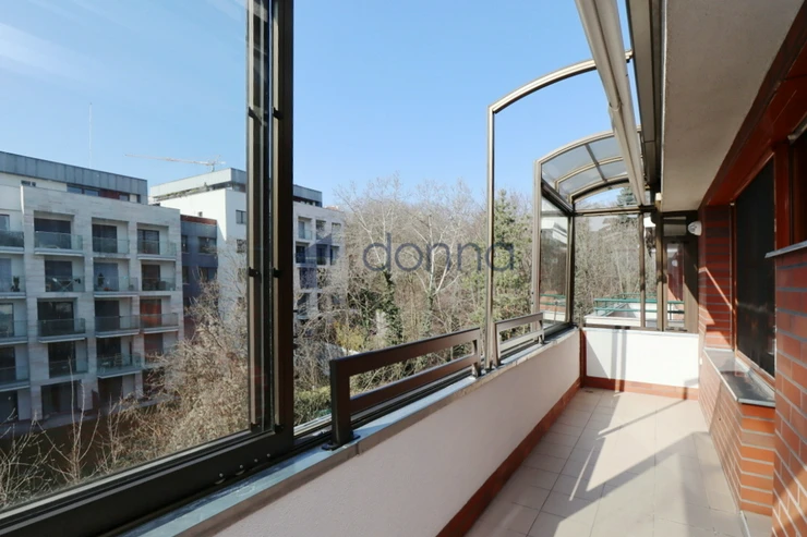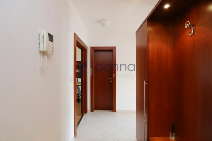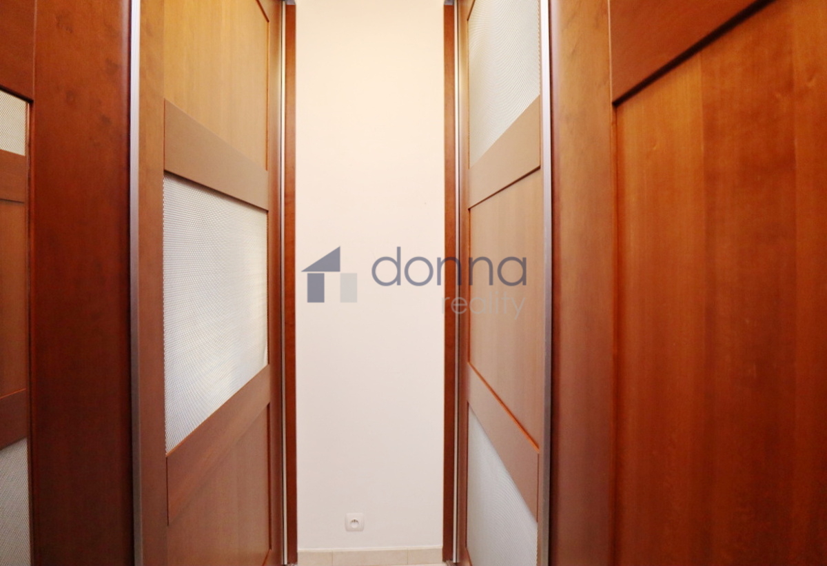 Apartment for rent a 2+kt/2xT apartment, 82sqm, on the top floor of a residential building with a 24/7 reception desk and a shared garden for the residents of the building, in U Nikolajky street, Prague 5 - Smíchov. The apartment is fully furnished and consists of an entrance hall, a dressing room, a large bedroom with access to one terrace, a bathroom with a corner bath and shower, a spacious living room with a kitchenette and a storage room with a safe. The toilet is separate. The living room leads to the second terrace. Both terraces have an opening roof. The kitchen has a fridge with freezer, dishwasher, microwave, electric hob and extractor hood. There is a washing machine in the bathroom. Heating and water heating are central. The floors are wooden parquets and tiles. There are external blinds on the windows. It is also possible to rent a garage space with the apartment. The house is located in a quiet part of Smíchov.