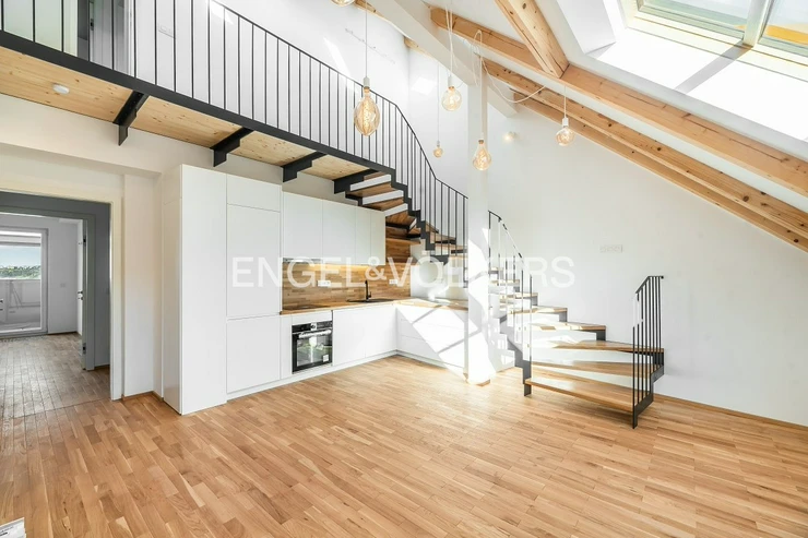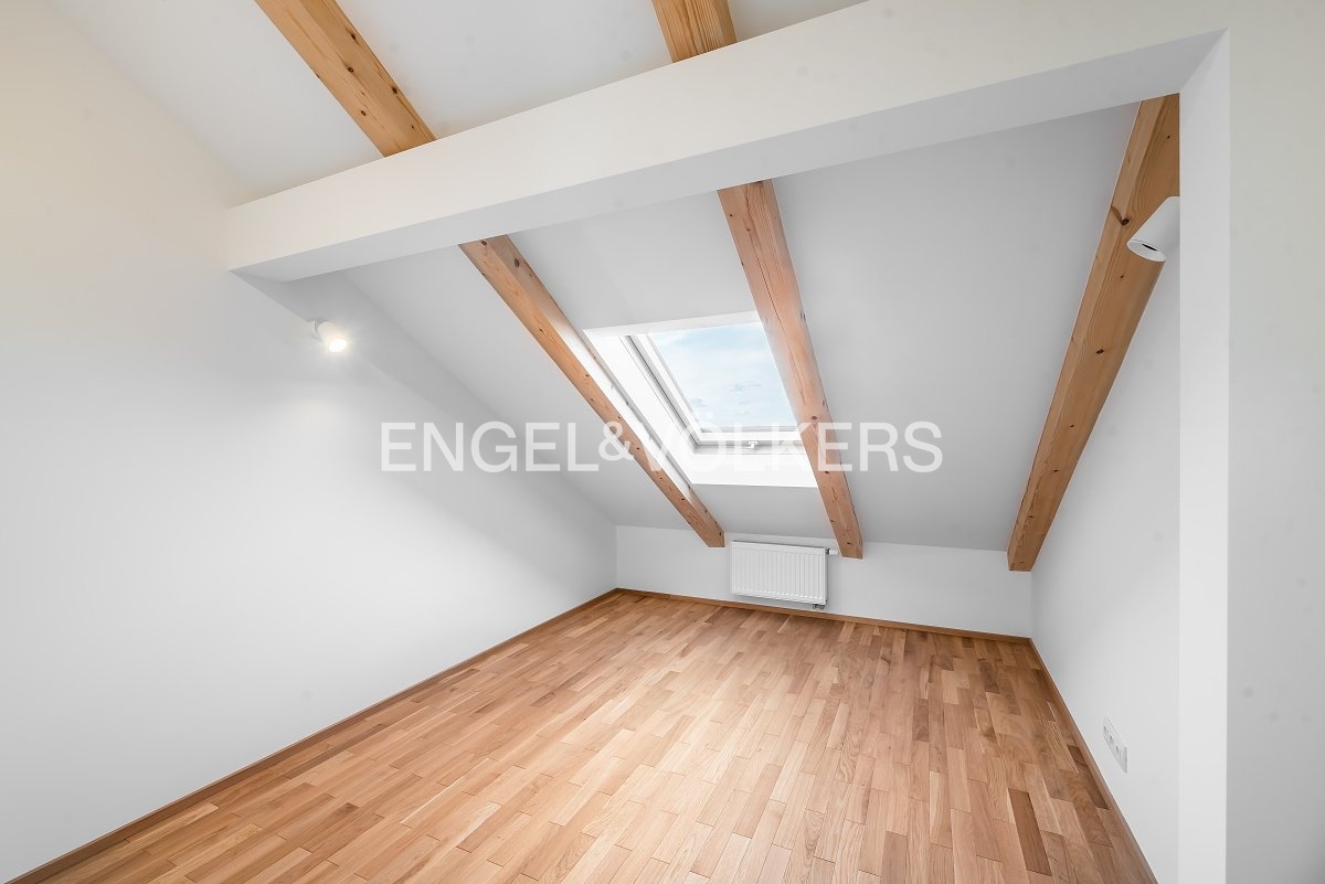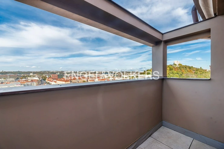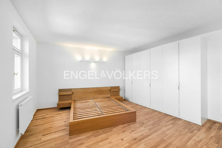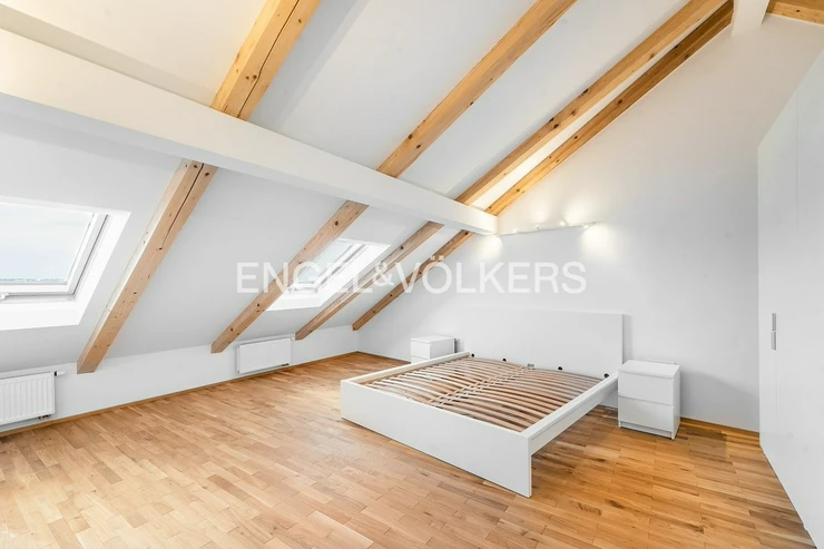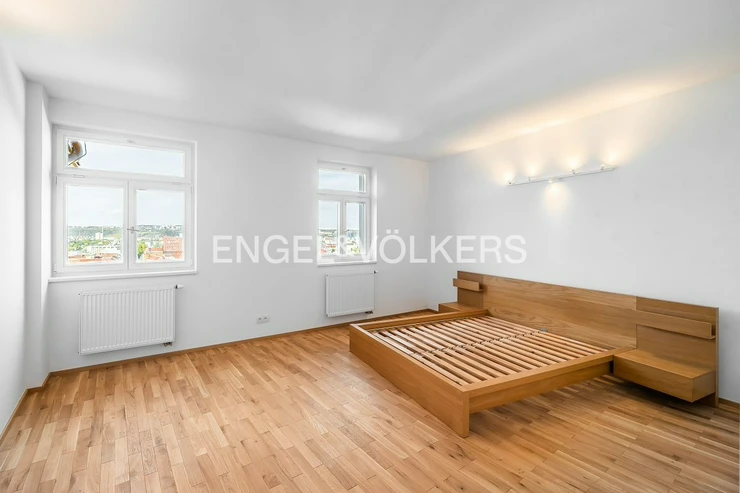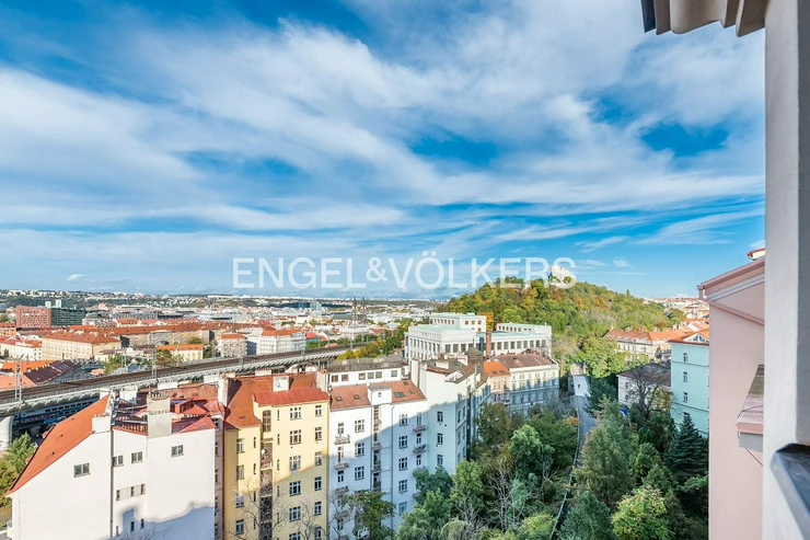 Available for immediate rent is a beautiful bright 5+kt apartment located on the 5th-6th floor of a beautifully renovated tenement house in Žižkov. During the quality and expensive renovation, care was taken to preserve the original elements. The apartment consists of an entrance hall with a wardrobe, a spacious living room with a kitchen, and four separate rooms. The living room flows seamlessly into a fully equipped modern kitchen. On the first floor of the duplex, there are two separate rooms. One of them is equipped with built-in wardrobes and a bed. The second room can be used as an office or guest room and has access to a beautiful terrace with a unique view of the whole of Prague. On the 2nd floor of the duplex, there are two more separate rooms. There are two bathrooms in the apartment - one with a bathtub and the other with a shower. A built-in washing machine is also available. The flooring consists of wooden parquets and tiles. The building is located in an area with full civic amenities - shops, restaurants, cafes, and more. A short distance from the house is the tram stop - Viktoria Žižkov.
