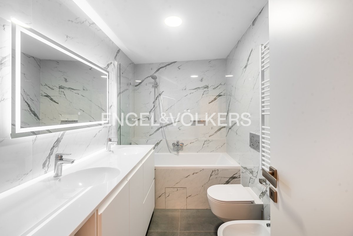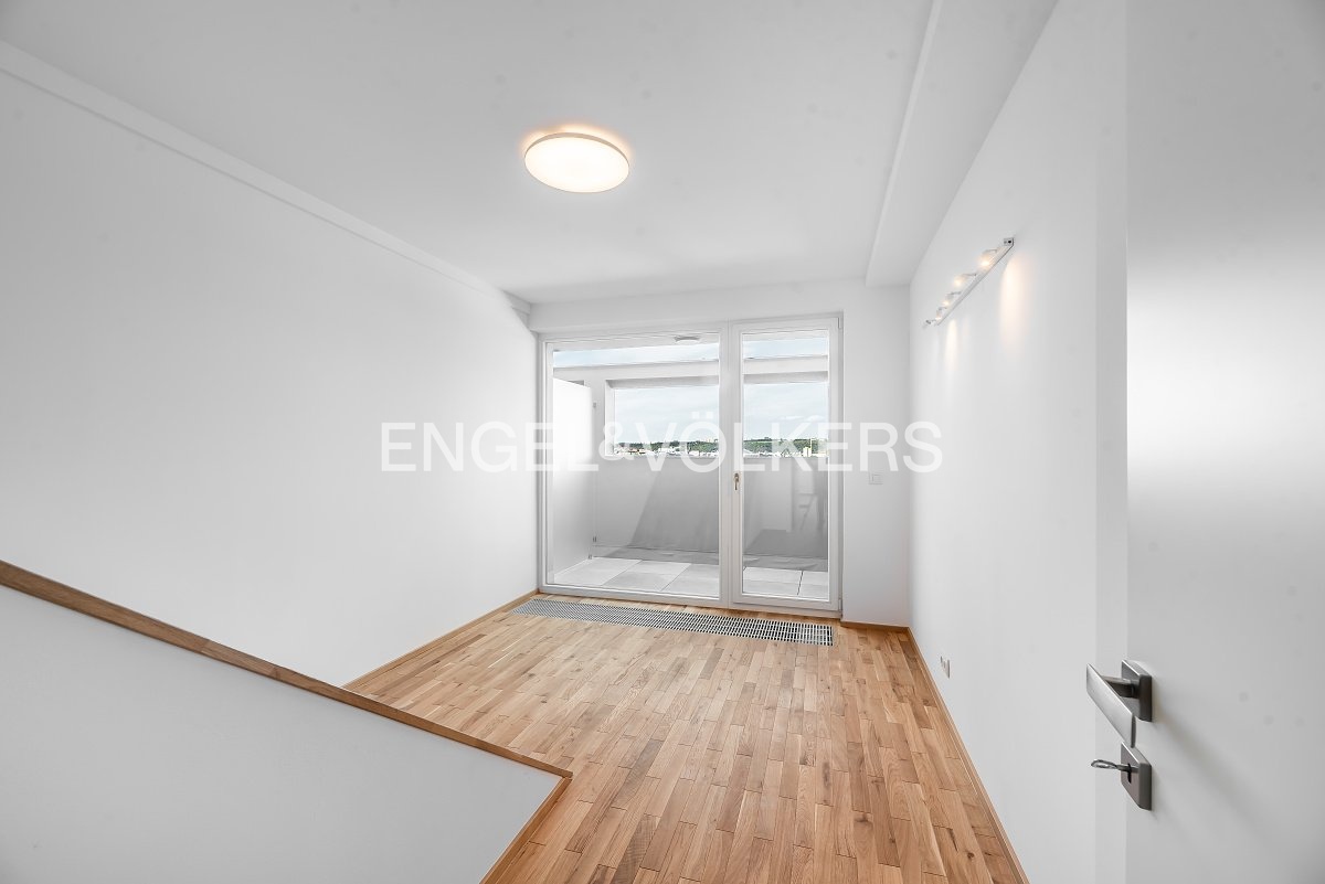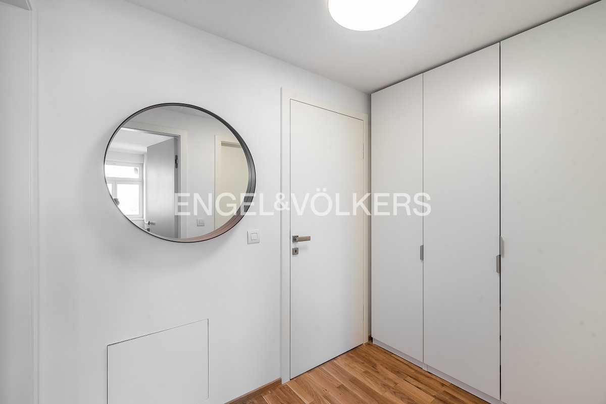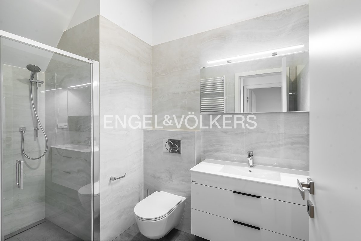 Available for immediate rent is a beautiful bright 5+kt apartment located on the 5th-6th floor of a beautifully renovated tenement house in Žižkov. During the quality and expensive renovation, care was taken to preserve the original elements. The apartment consists of an entrance hall with a wardrobe, a spacious living room with a kitchen, and four separate rooms. The living room flows seamlessly into a fully equipped modern kitchen. On the first floor of the duplex, there are two separate rooms. One of them is equipped with built-in wardrobes and a bed. The second room can be used as an office or guest room and has access to a beautiful terrace with a unique view of the whole of Prague. On the 2nd floor of the duplex, there are two more separate rooms. There are two bathrooms in the apartment - one with a bathtub and the other with a shower. A built-in washing machine is also available. The flooring consists of wooden parquets and tiles. The building is located in an area with full civic amenities - shops, restaurants, cafes, and more. A short distance from the house is the tram stop - Viktoria Žižkov.