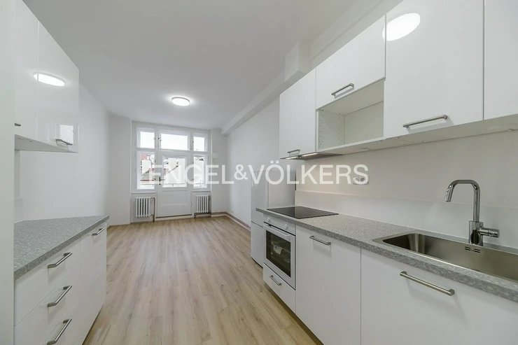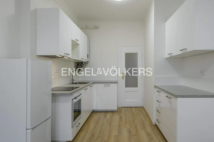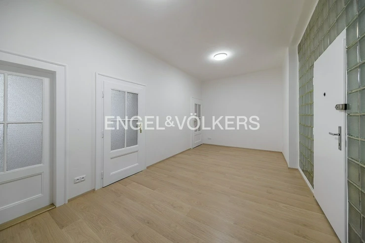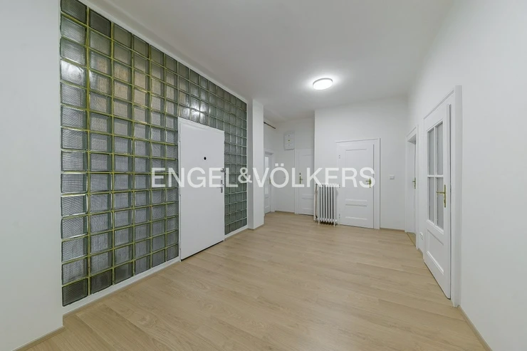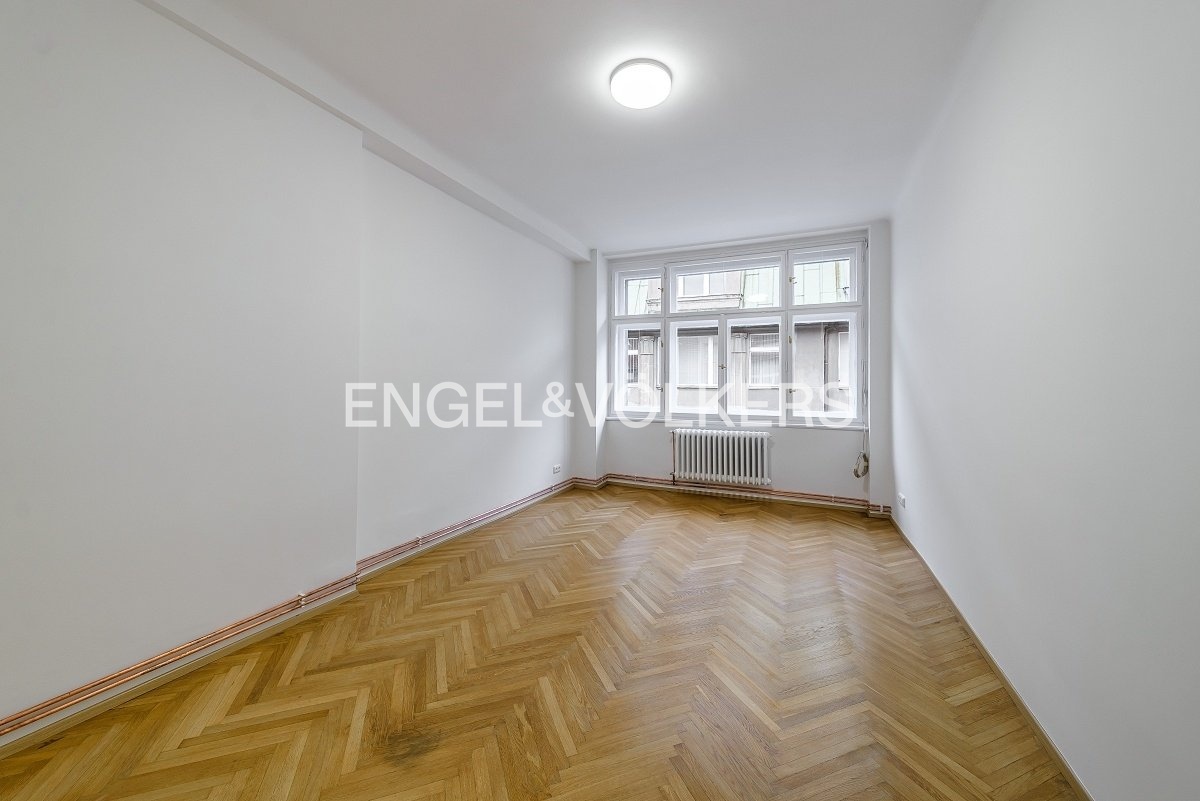 Starting from May 1, 2026, we offer for rent a bright 3+1 apartment, situated near Wenceslas Square. The apartment is on the third floor of a well-maintained apartment building with an elevator. It features a practical layout with a spacious entrance hall leading to individual rooms. Preserved functionalist elements like glass blocks beautifully illuminate the entrance hall. The apartment includes a living room, two bright bedrooms with refurbished parquet floors and large windows, a fully equipped kitchen with a dining area and access to a balcony facing the inner courtyard, a bathroom with a shower and toilet accessible from the hallway, and an additional separate toilet. The apartment is also suitable for office use.Fees are 800 CZK per person per month, with electricity and gas transferred to the tenant. A security deposit is set at the amount of two months' rent. The real estate agency's commission is one month's rent plus VAT.