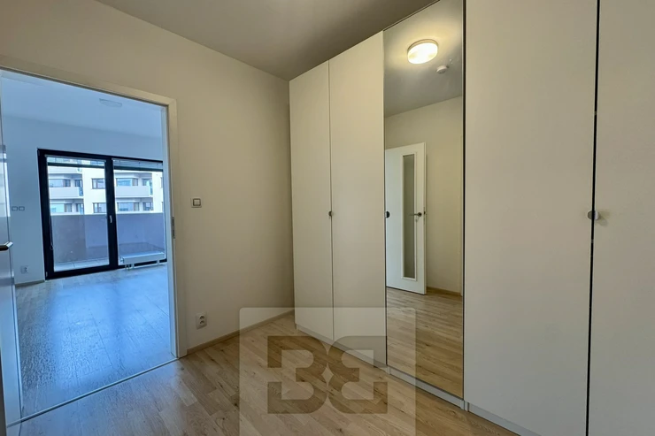 e offer for rent a modern studio apartment (1+kk) with a total area of 42 m² and a balcony, located in a new residential building on Kigginsova Street in Brno – Slatina. The apartment also includes a private parking space directly next to the building, which is a great advantage in this area.