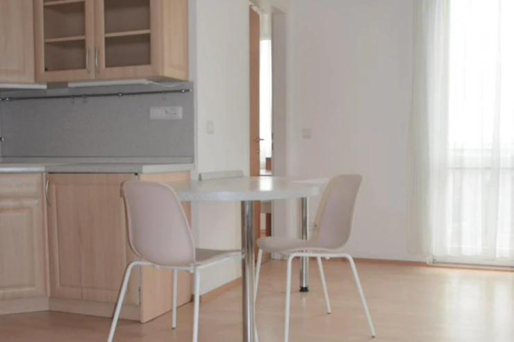 The apartment consists of an entrance hall with a built-in wardrobe, a spacious living room with a kitchenette, a separate bedroom, a bathroom with a shower and a toilet. In flat is air conditioning. The heating and heat of water is provided by gas boiler.