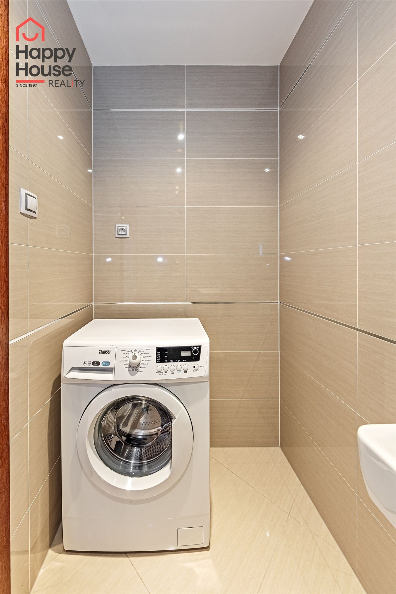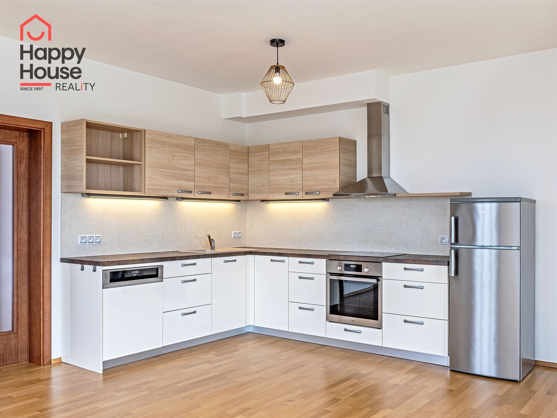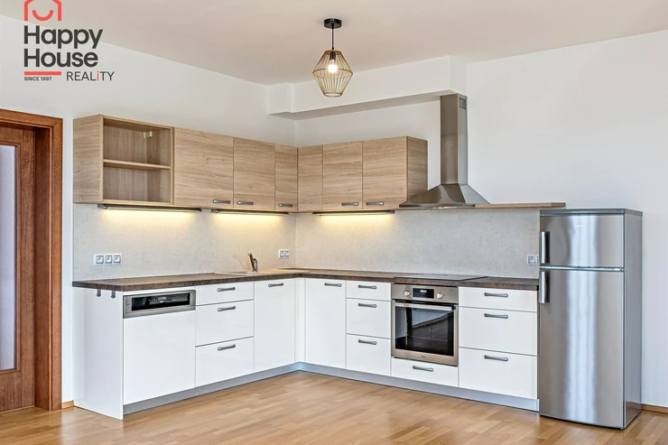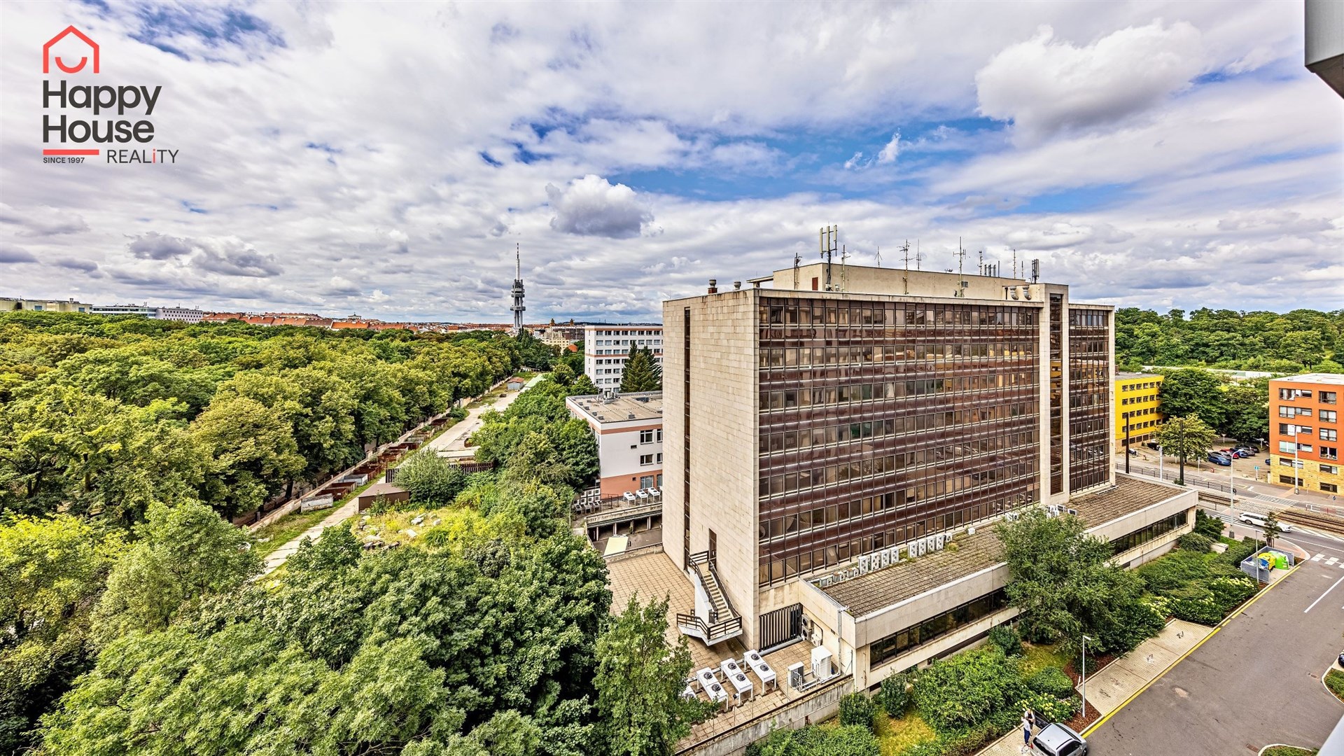 We exclusively offer for long-term rent a bright, spacious two-bedroom apartment with a cellar on the 8th floor of a brick building with an elevator in the popular area of Prague 3 on Žižkov. The kitchen is equipped with a fridge and freezer, ceramic hob, electric oven, and dishwasher. Bathroom with a bathtub and toilet. Laminate floating floors and tiles. Remote central heating. Telephone and internet are available. Garage parking included in the rent.