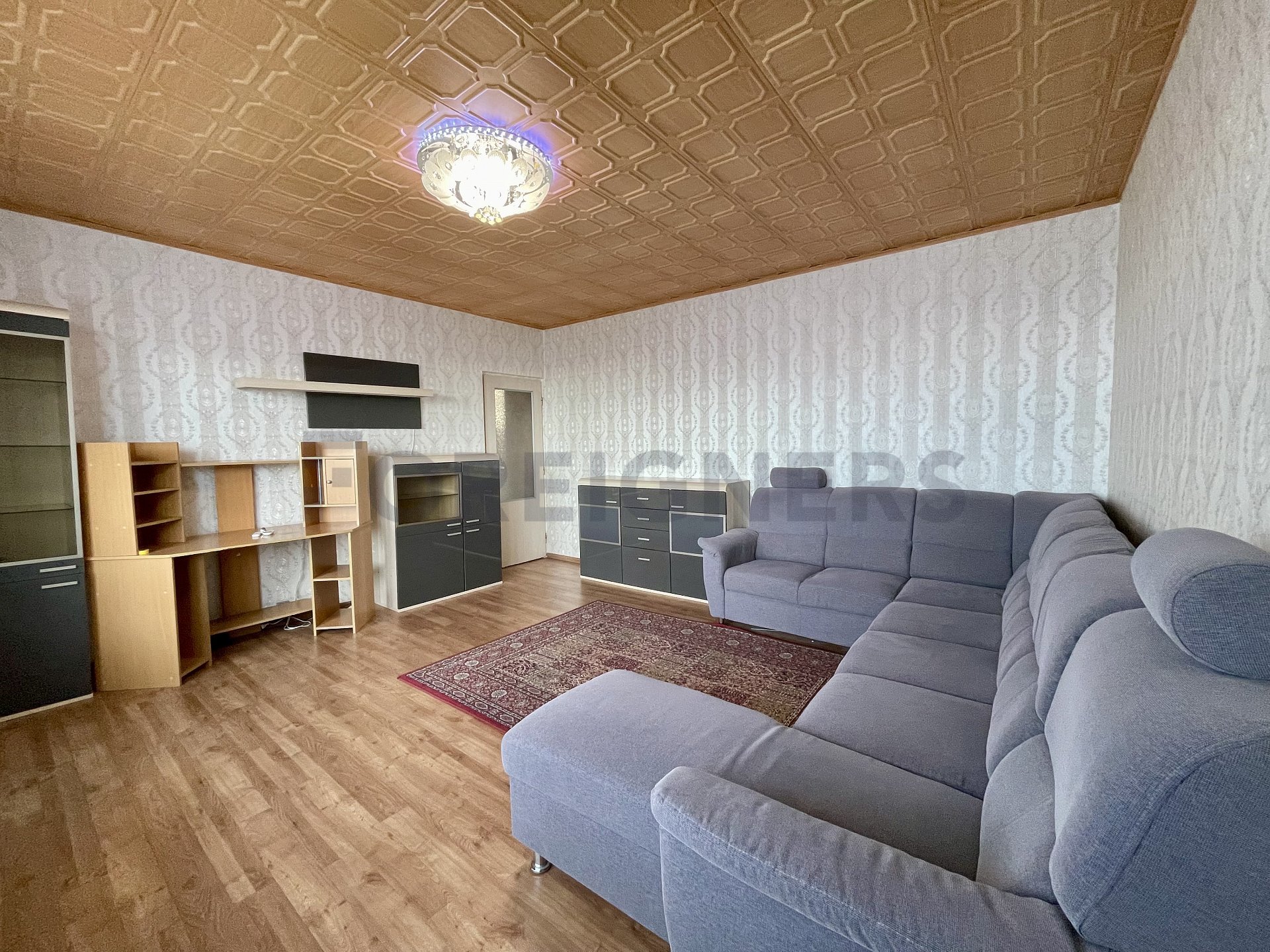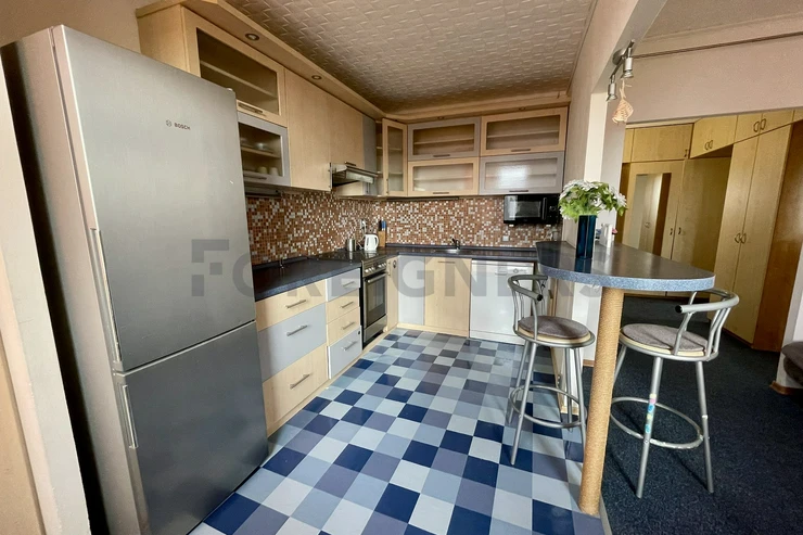 The apartment is fully furnished. In the kitchen, there is a stove, a dishwasher, an oven, a fridge with a freezer and a microwave. There is a washing machine in the bathroom. The other furniture in the apartment is according to the pictures.