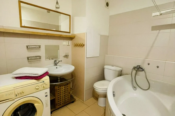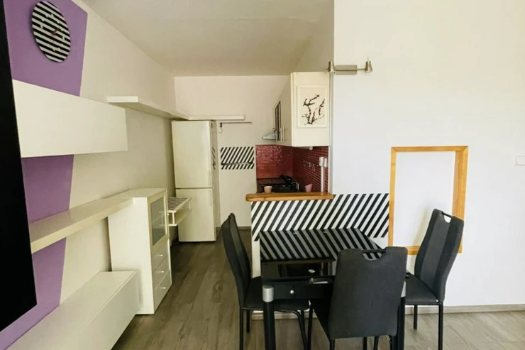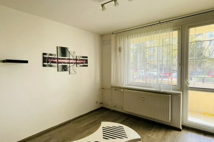 Byt je staršího typu, avšak nabízí praktické a funkční bydlení. Dispozice se skládá z obývacího pokoje s kuchyňským koutem a menší ložnice, která je ideální zejména pro umístění postele. Díky své velikosti je byt vhodný především pro jednotlivce nebo pár.