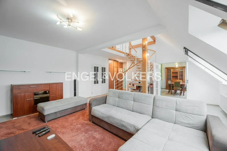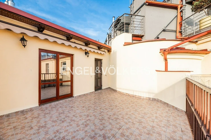We offer for immediate rent a spacious, fully furnished duplex apartment located on Puškinovo Náměstí in the popular residential area of Prague - Bubeneč. The apartment is located in a renovated apartment building with an elevator directly to the floor.