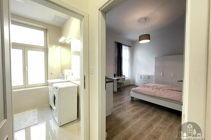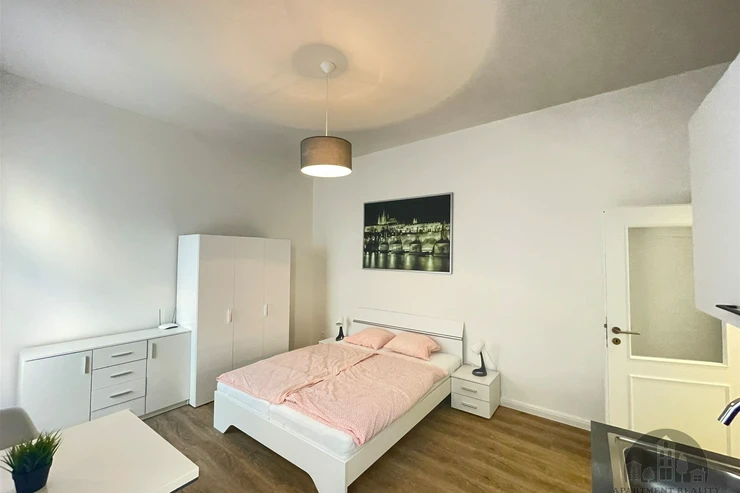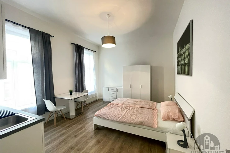We offer a nice furnished 1+kk apartment for long term or medium term rent, located on Půtova street in Prague 1. The apartment consists of a hallway, a room with a kitchenette, and a bathroom. Suitable for Erasmus students. The price is 26,000 CZK/month including fees and internet. A deposit of 26,000 CZK, commission, and deposit are required. Not suitable for short-term rentals. Available from April 1, 2026.