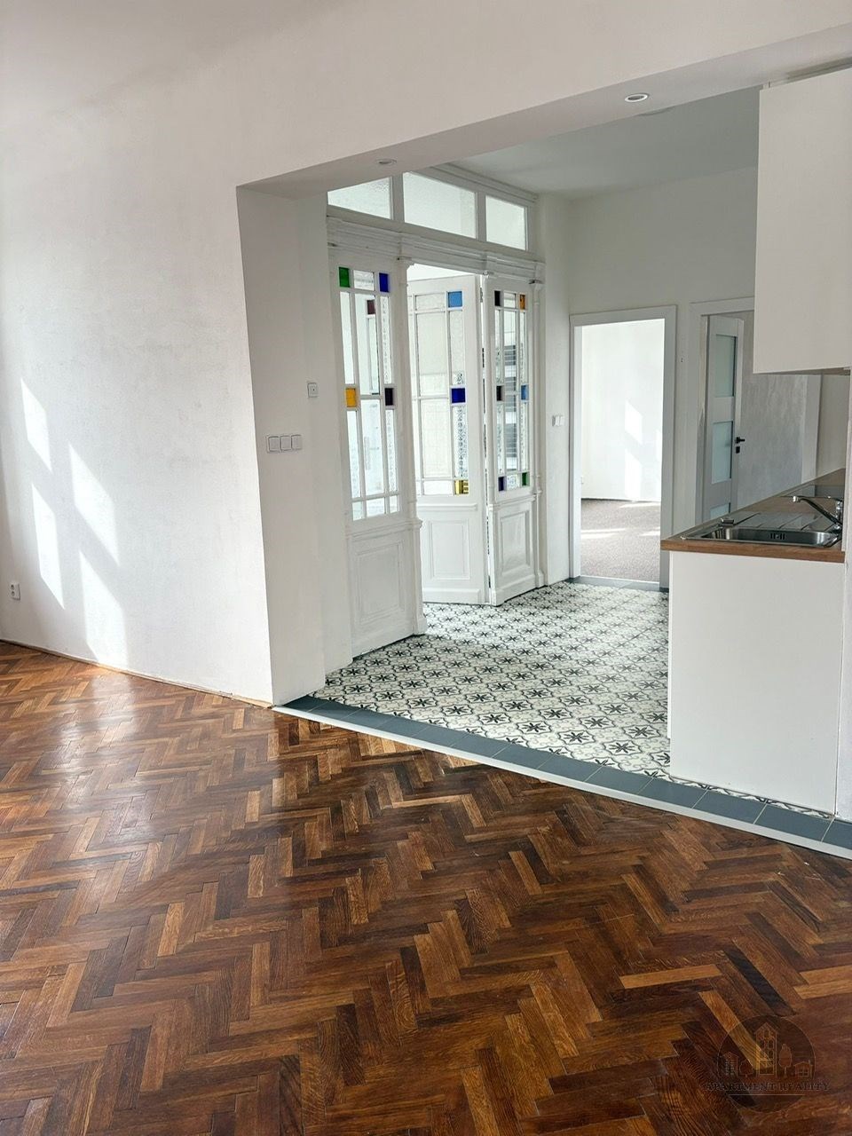 The building, in which the apartment is located, has undergone careful reconstruction and offers pleasant living in a quiet part of the city with excellent access to the center. In close proximity, you will find all civic amenities - schools, nurseries, shops, restaurants, and cafes. For nature lovers and sports enthusiasts, several parks and sports facilities are nearby.