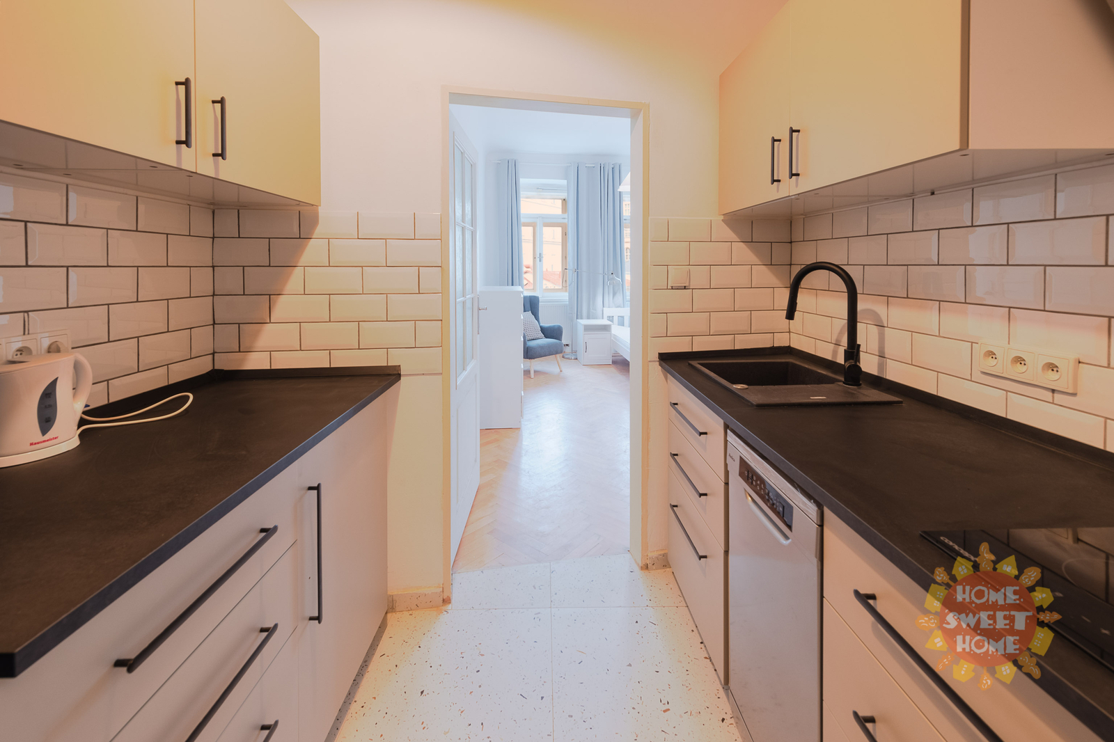 The apartment is situated in a popular location between Karlovo náměstí and I. P. Pavlova. Excellent transport connections – the C-line I. P. Pavlova metro station and the B-line Karlovo náměstí metro station are just a few minutes’ walk away. The Moráň tram stop is only 3 minutes on foot from the building.