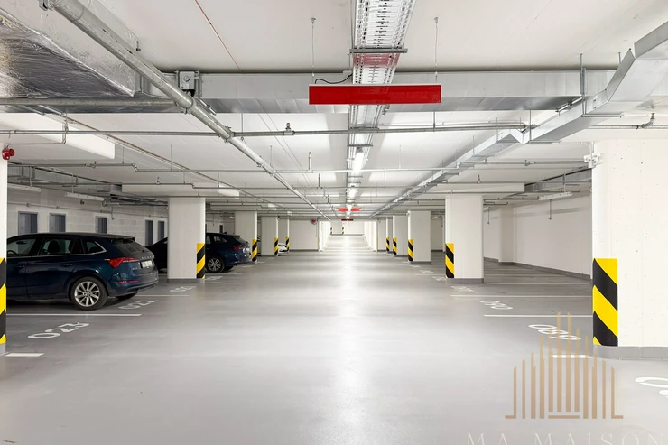 Comfortable living is enhanced by air conditioning and a ventilation system with heat recovery. The apartment is also equipped with external blinds, providing greater privacy and light control. A significant advantage of the apartment is a spacious cellar storage unit. The rent also includes a garage parking space located directly in the building.