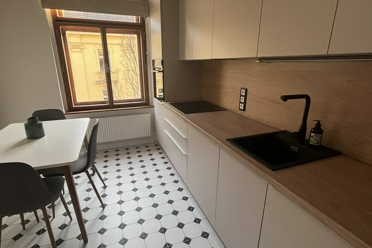 Renovated and bright 2+1 apartment for rent in Vinohrady. The flat combines traditional architecture with modern comfort and air conditioning. The property is located in a quiet part of Prague 2. The apartment, with a total area of 74 m², is situated on the 3rd floor and is accessible by elevator.