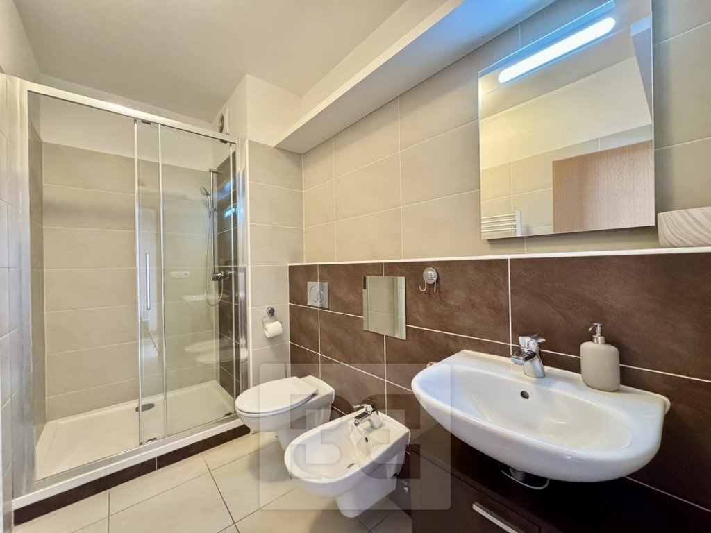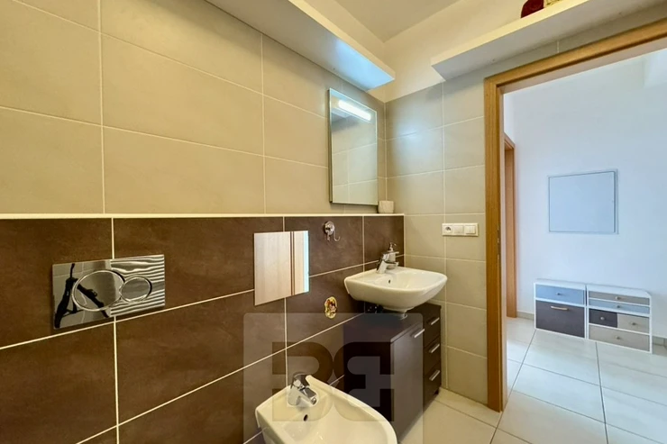 From the living room there is direct access to a spacious terrace, offering a breathtaking panoramic view of the entire city of Brno. All windows are fitted with external shutters, ensuring comfort and privacy.