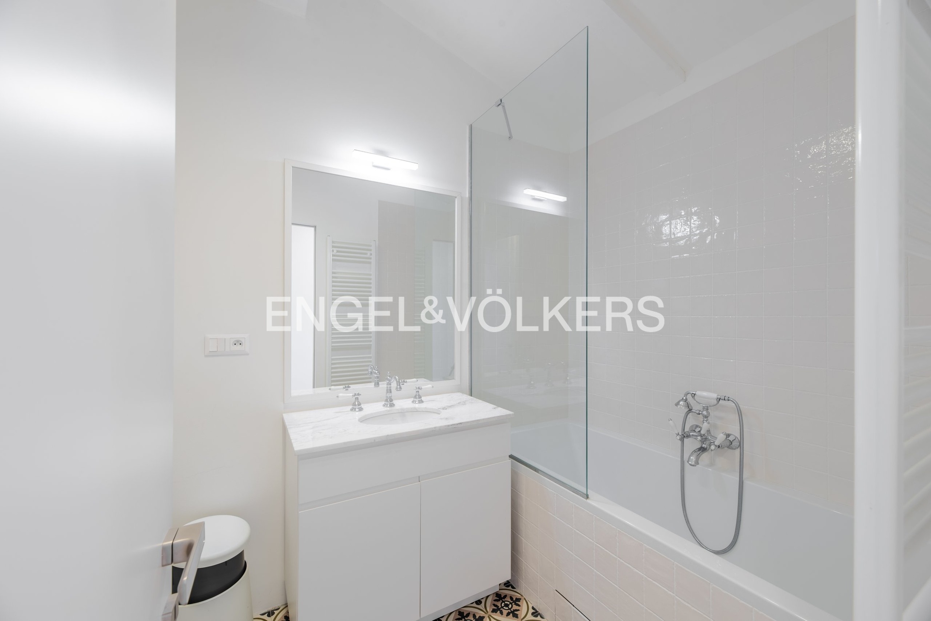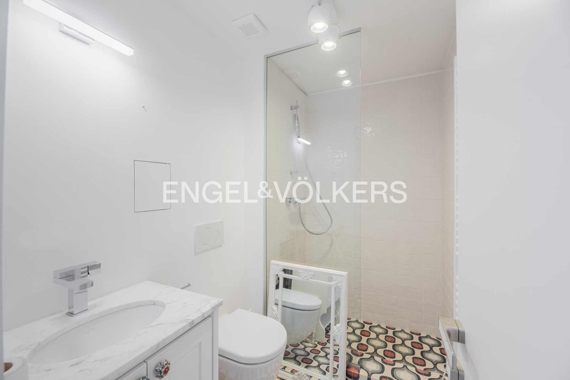 The apartment is located on the 3rd floor of the Císařský Mlýn residence and features a 3+kt layout with a floor area of 96 m².
