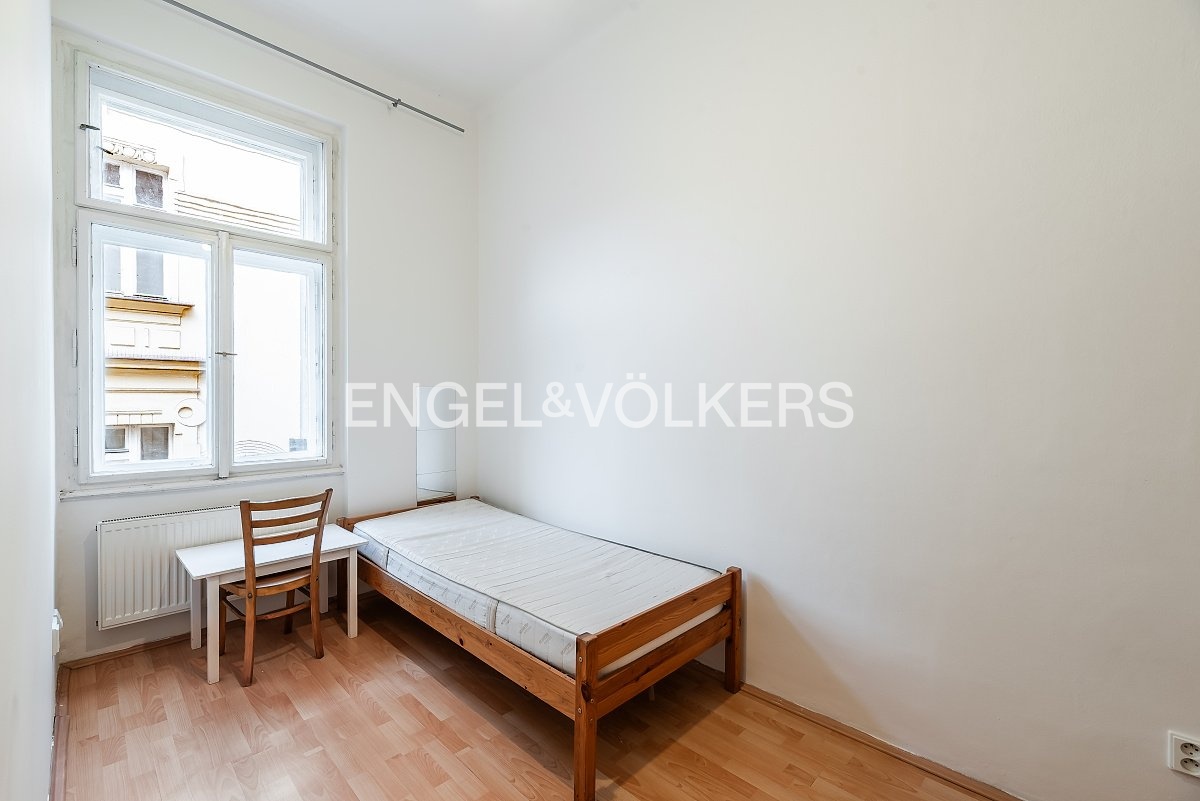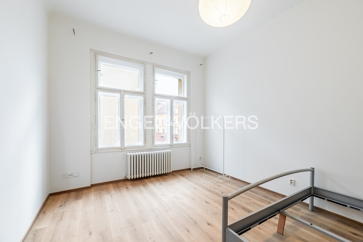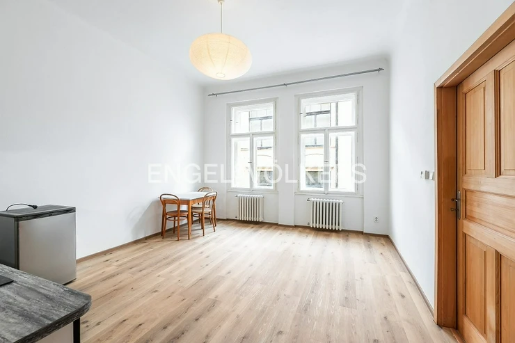 We offer for immediate rent a bright 3+kk apartment situated in a historic apartment building in the center of Old Town. The apartment is located on the 4th floor (3rd floor above ground) of a building without an elevator.