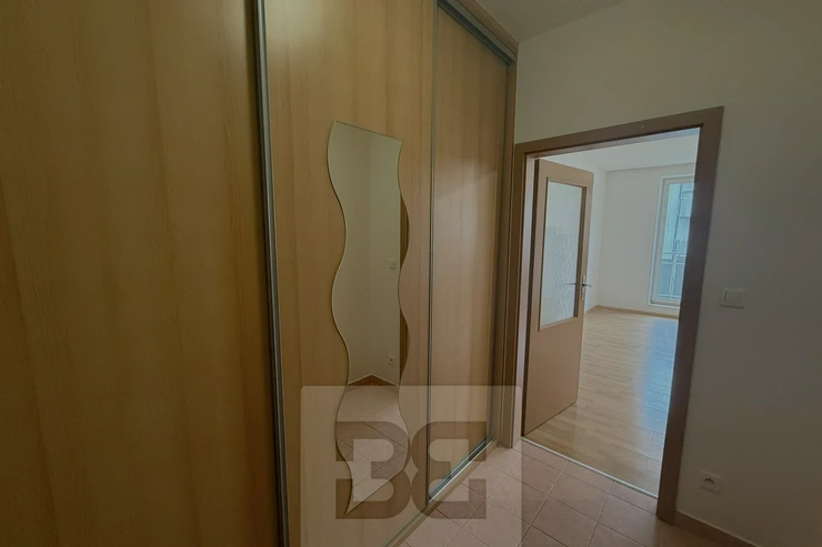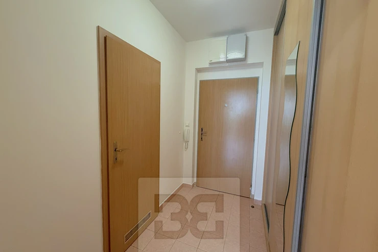 The apartment has a hallway with built-in wardrobe, from where we get to the main room with equipped kitchen ( induction hob, electric oven, dishwasher, fridge). In the bathroom we find a shower, toilet and washing machine.