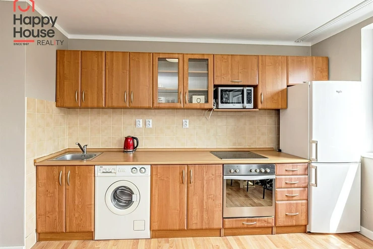 Exklusivně nabízíme k dlouhodobému pronájmu zařízený byt 1+kk o velikosti 29 m2 v 9. patře panelového domu s výtahem v klidné části Prahy 9 Hloubětíně. V kuchyňském koutě se nachází linka, lednice s mrazničkou, sklokeramická deska, elektrická a mikrovlnná trouba, pračka, stůl a 3 židle. V koupelně je sprchový kout a toaleta. Dále postel s novými rošty a matracemi, vestavěná skříň a nové vstupní dveře. Ostatní zařízení na fotkách je pouze ilustarční. Laminátová plovoucí podlaha a dlažba. Centrální vytápění. Internetové připojení k dispozici. Veřejné parkování bez zón. Z bytu je nádherný výhled na starý Hloubětín a lesopark Lehovec